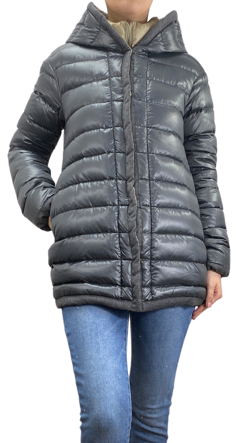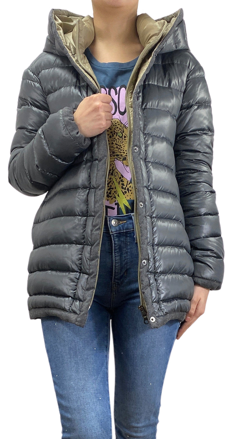 Parca color Gris con capucha y bolsillo interno. Talla 42 EU.