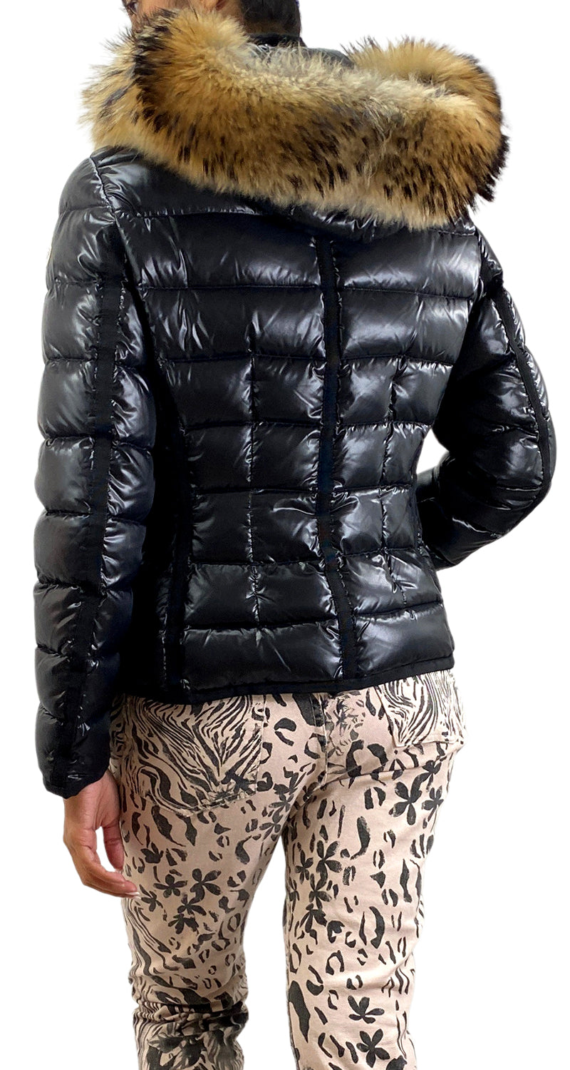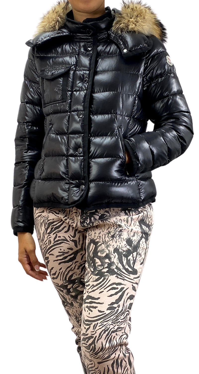 Parca color Negro con diseño de letras propias de la marca en broches, capucha desmontable con diseño de Piel auténtica en ruedos. Incluye zipper protector original. Talla 2 de la marca.