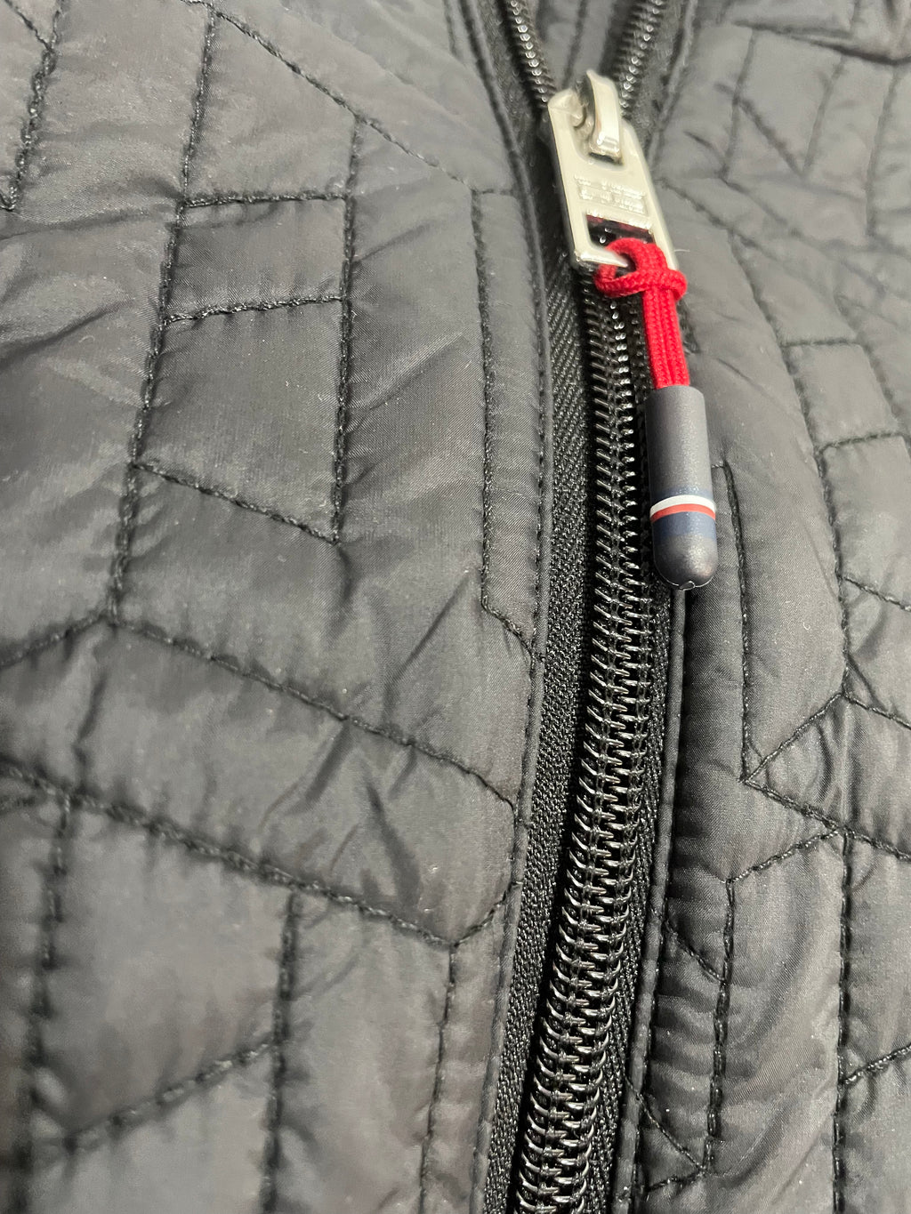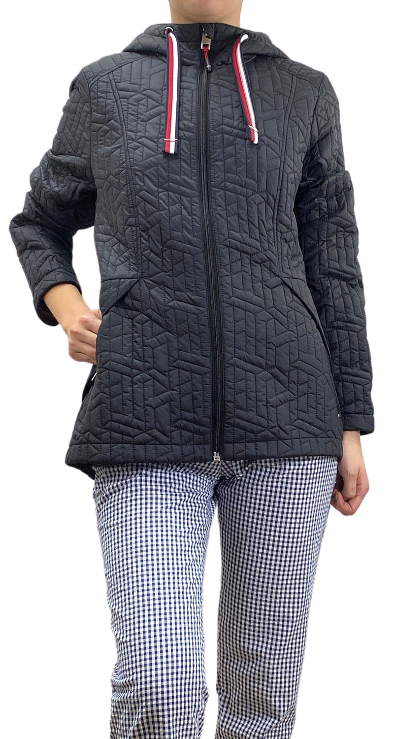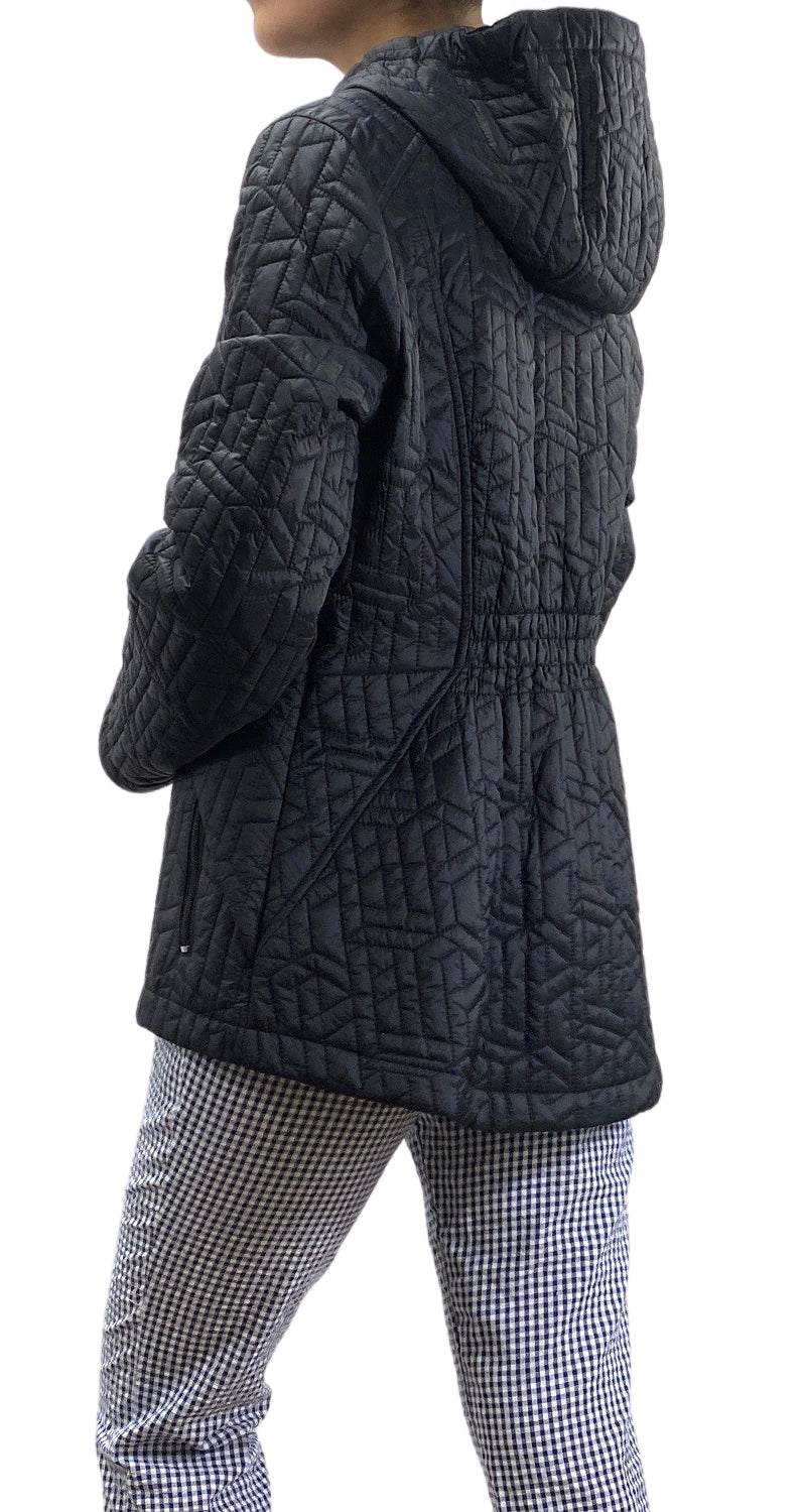 Parca con capucha en color Negro, dos bolsillos y cierre delantero.