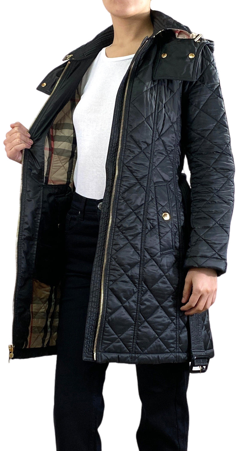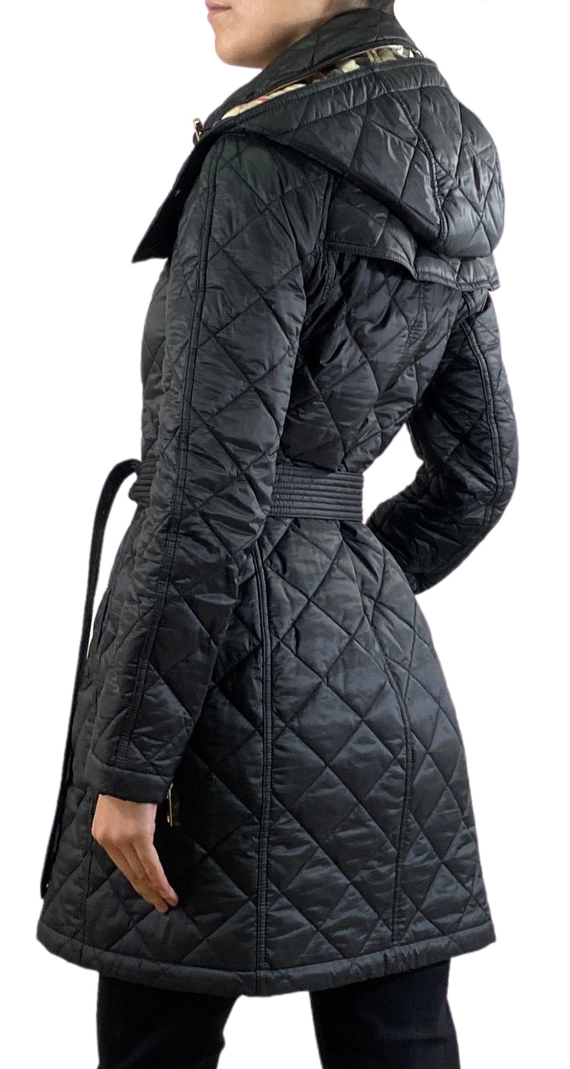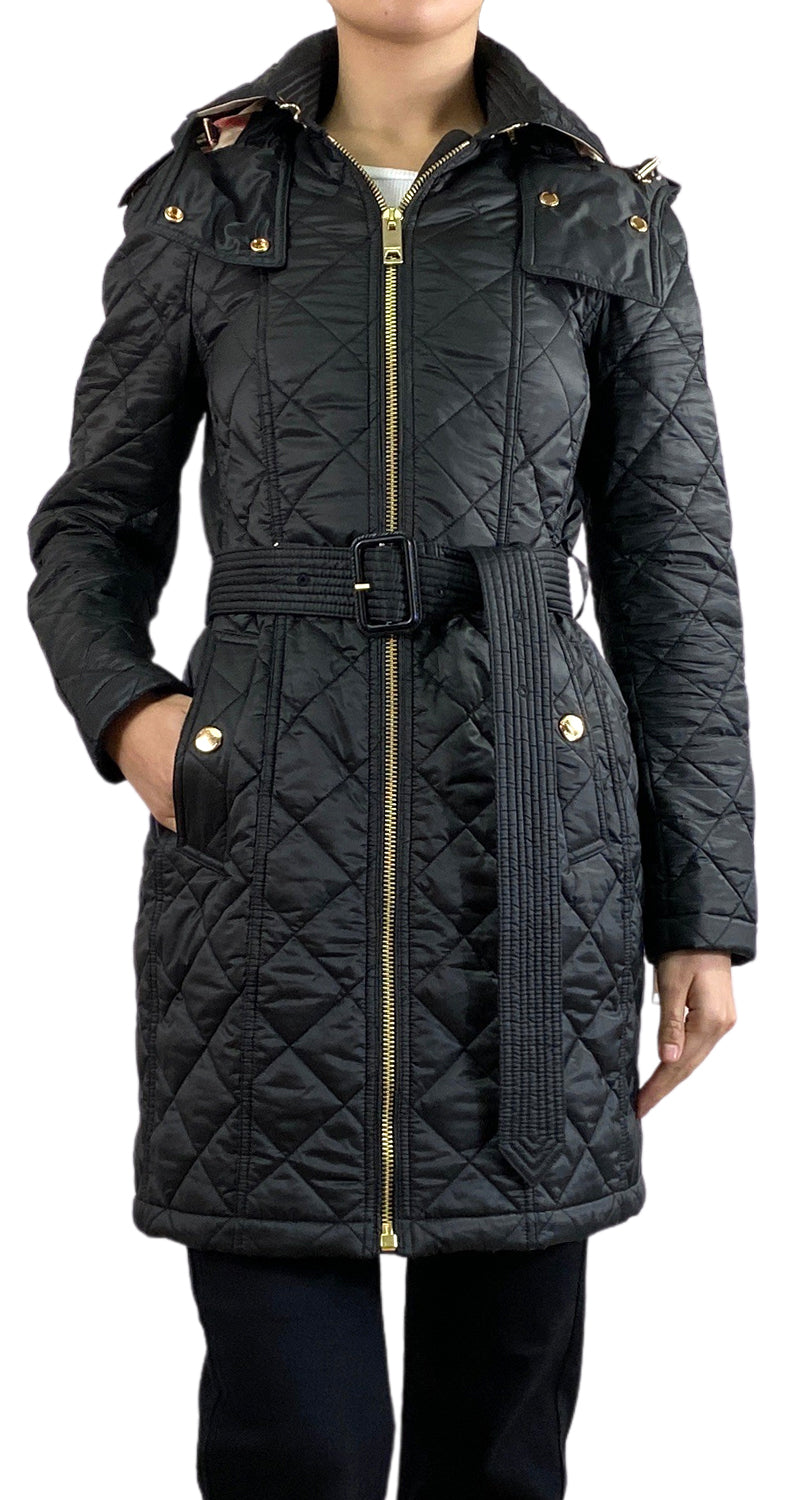 Parca color Negro con estampado interno característico de la marca y cinturón.