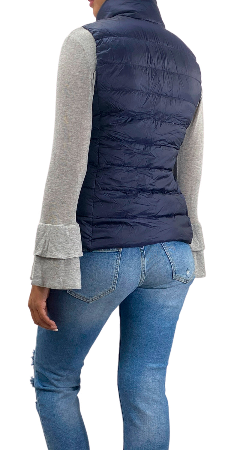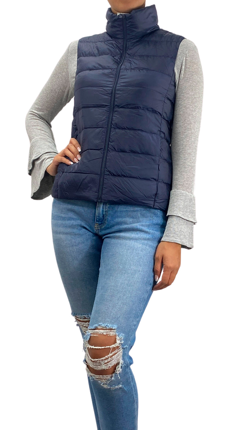 Parca color Azul sin mangas con cierre frontal y bolsillos. Incluye bolsa portátil.