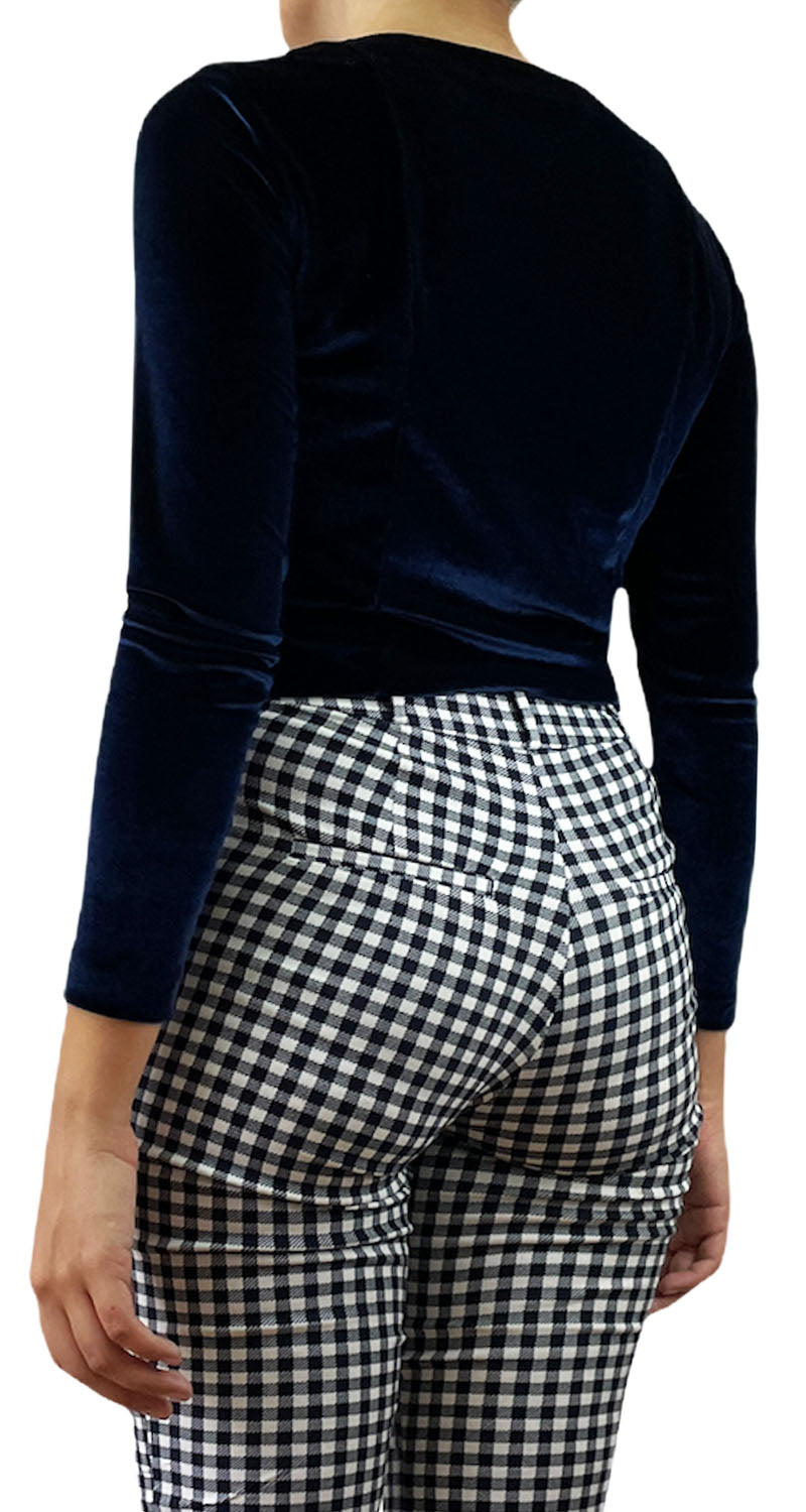 Polera crop manga larga velvet color Azul.