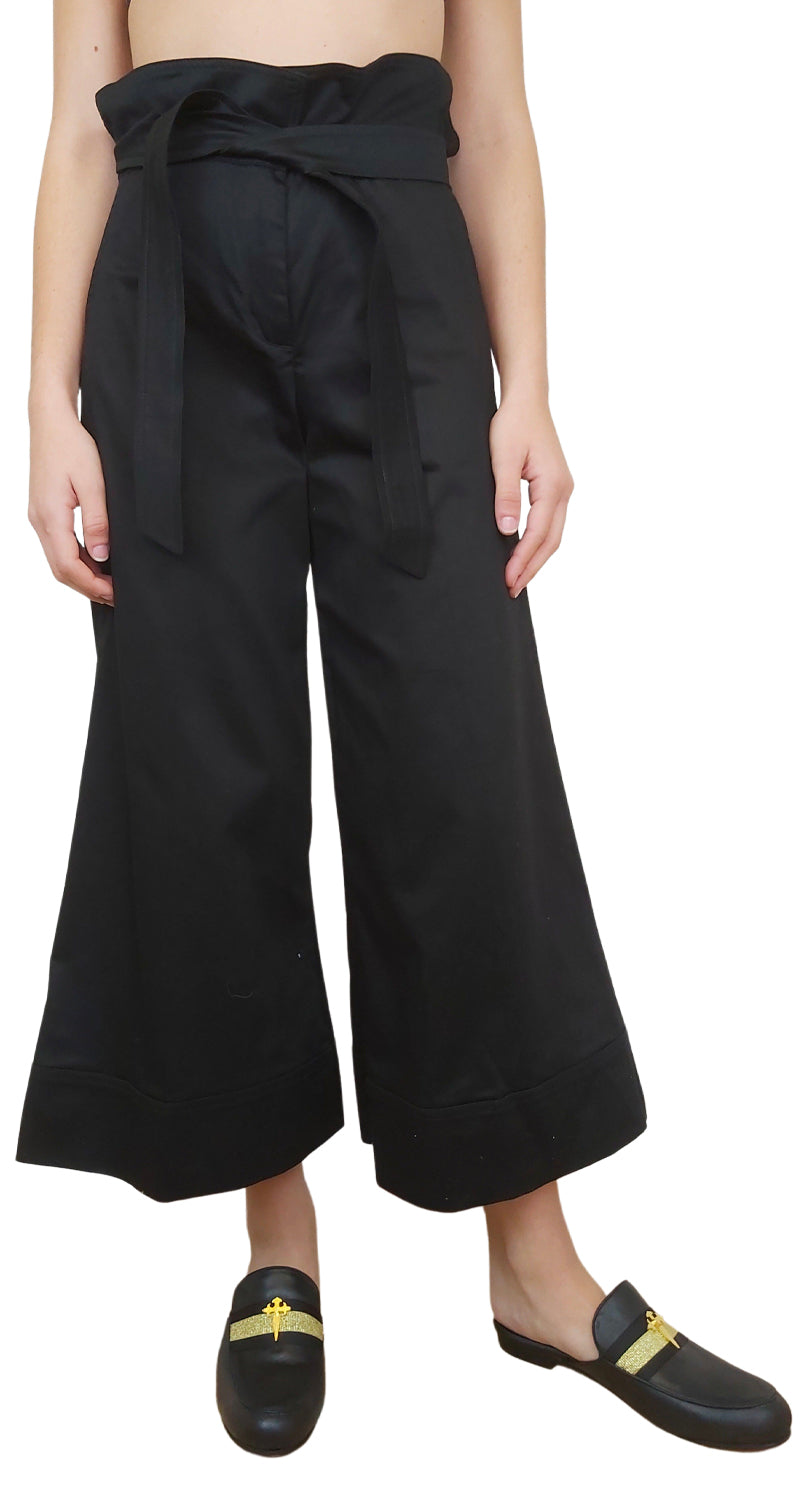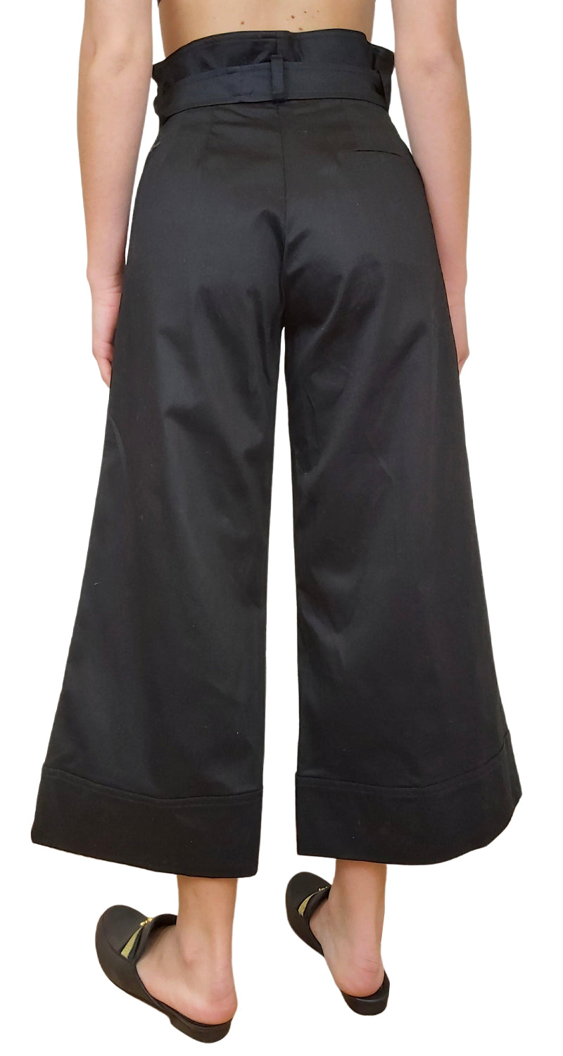 Pantalón tipo palazzo color Negro con cintura alta, lazo y broches de tope. Talla 1 de la marca.