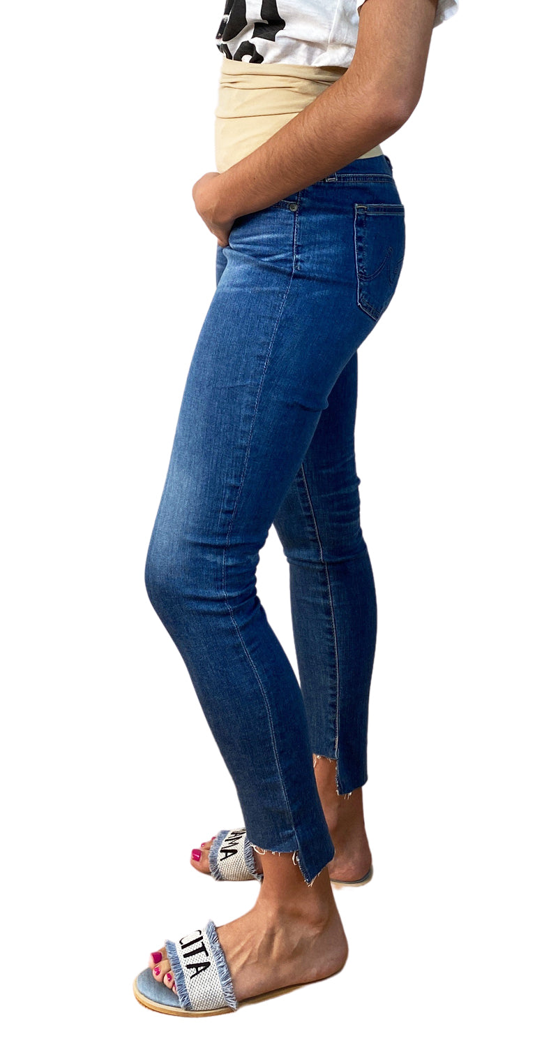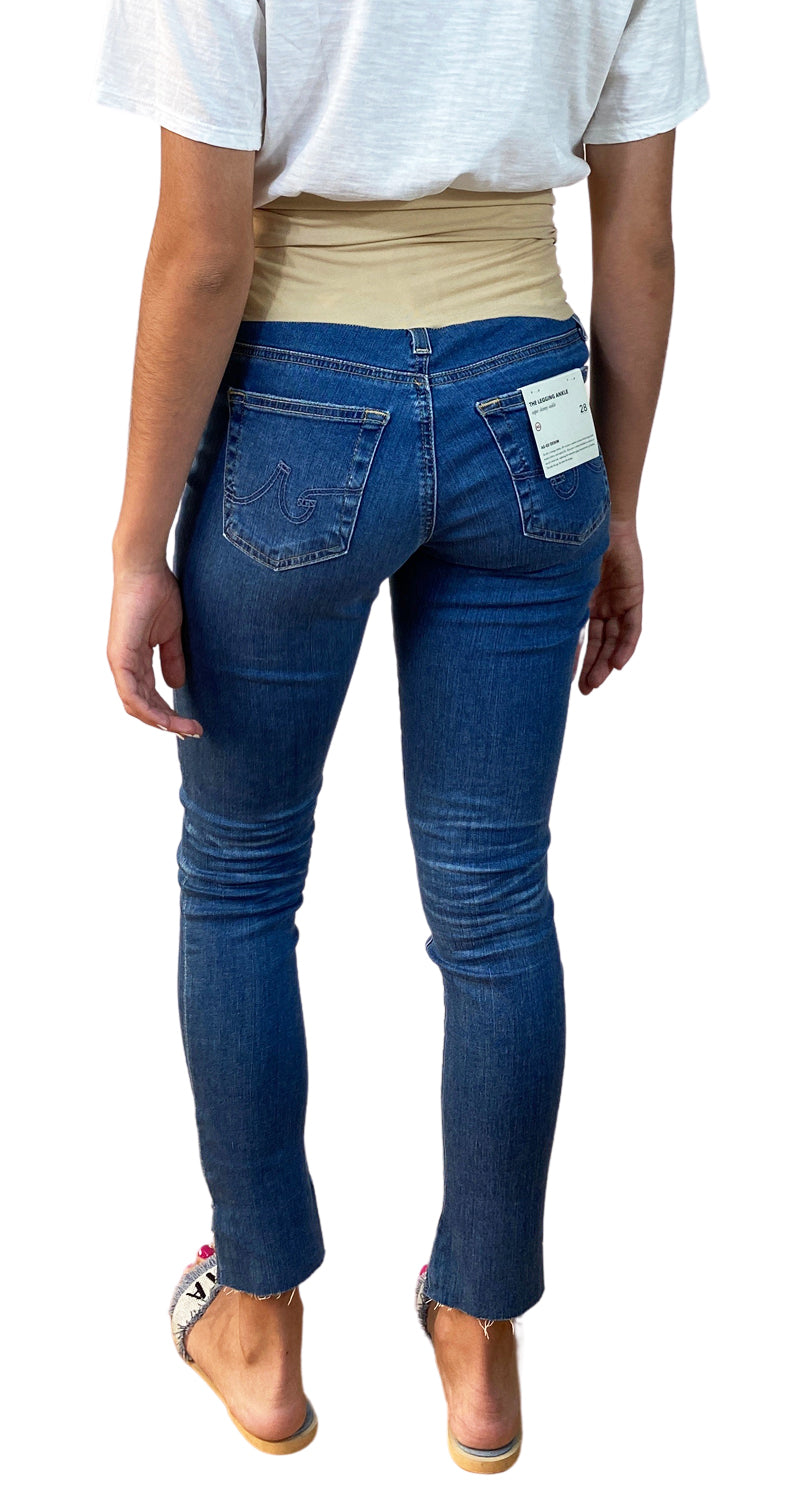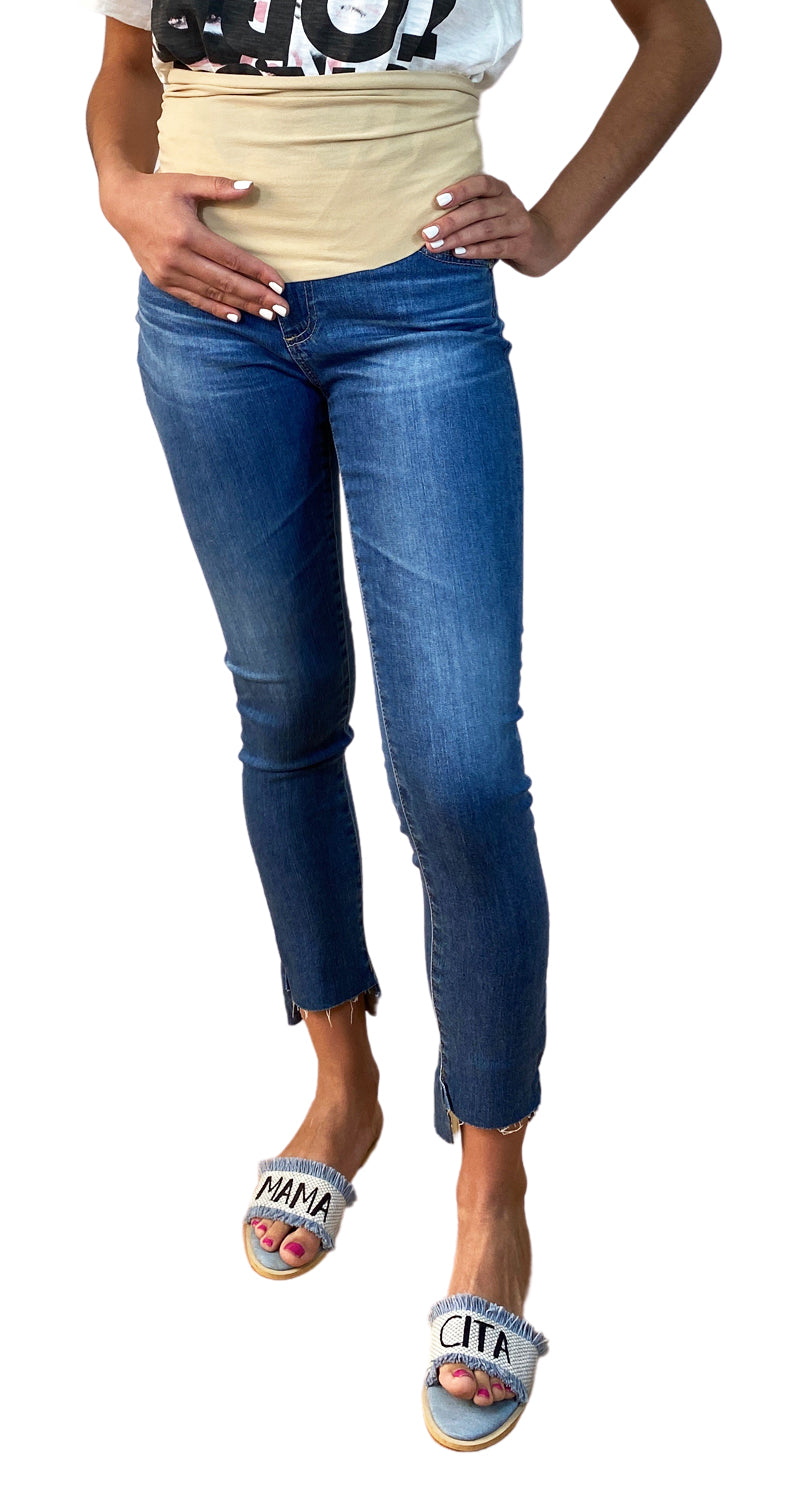 Super skinny jeans maternal deslavado con ruedo sin costuras asimétrico.
