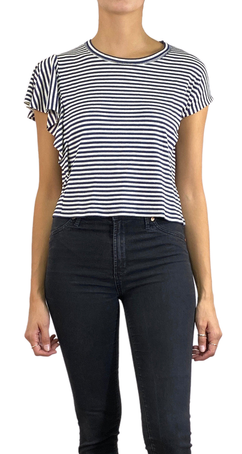 Polera con diseño a rayas en Blanco y Azul. Talla 3 de la marca.