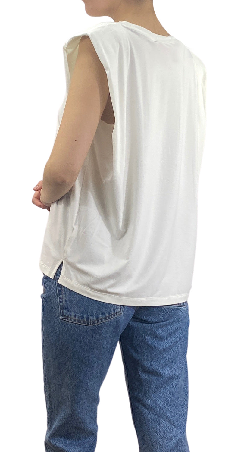 Polera sin mangas en color Blanco con hombreras, abertura en laterales.