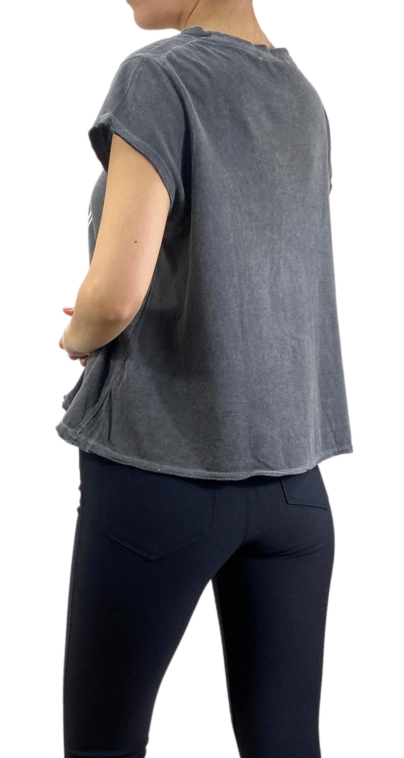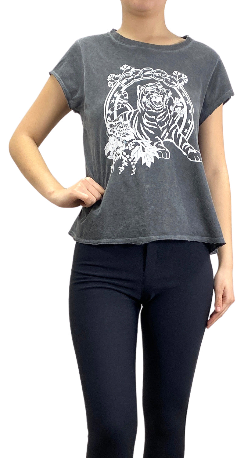 Polera color Gris con estampado frontal en Blanco. Talla 1 de la marca.