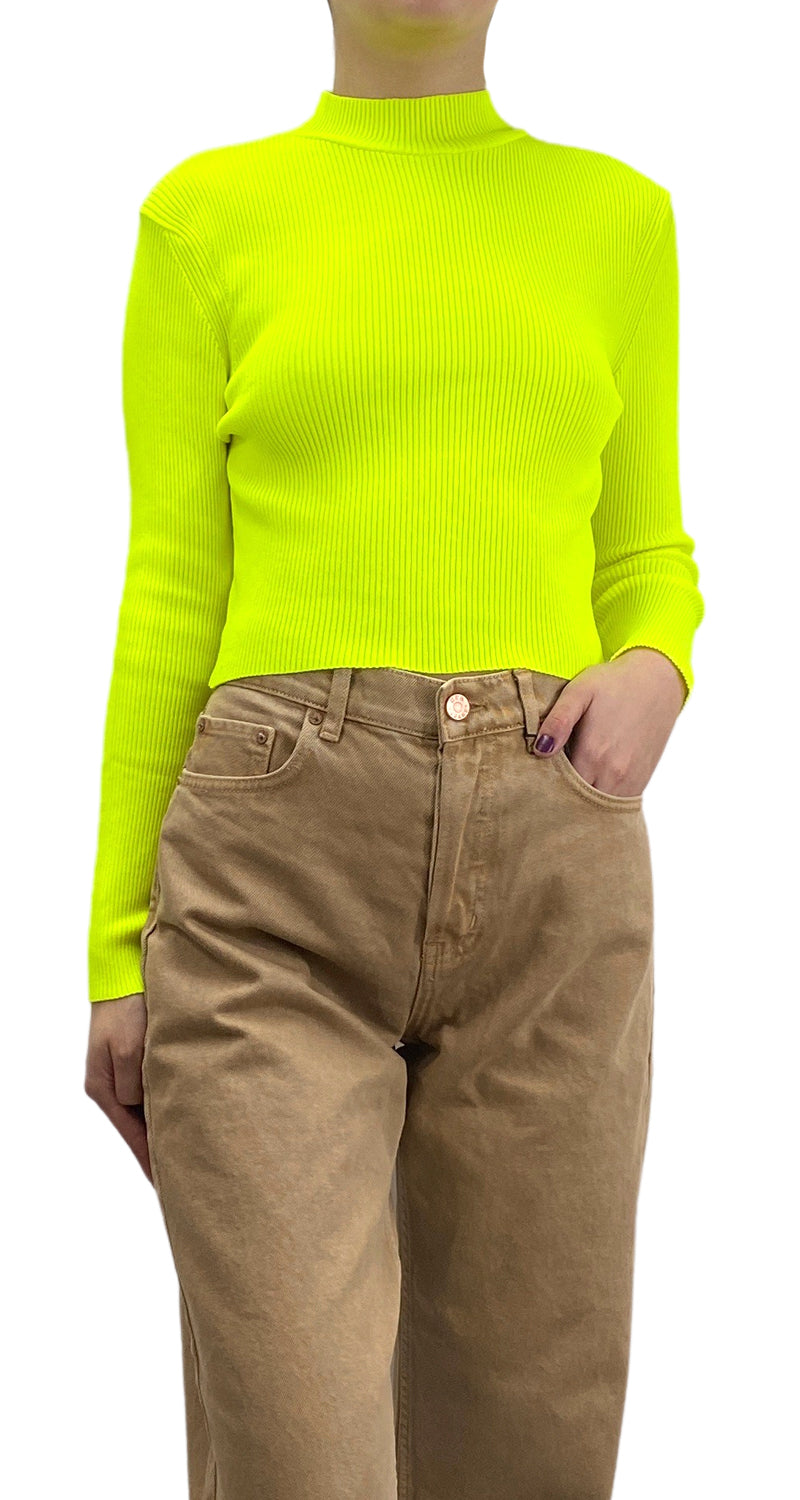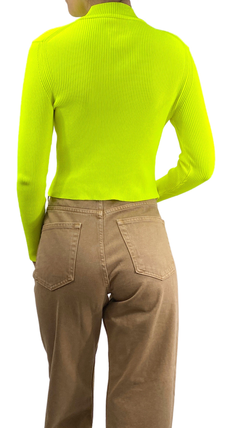 Polera manga larga fruncida en color Amarillo Fluorescente.