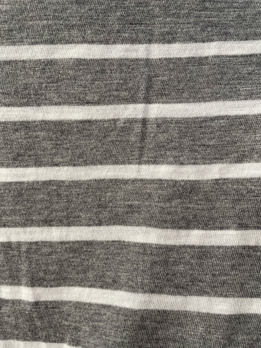 Polera color Gris de manga larga con diseño de rayas Blancas.