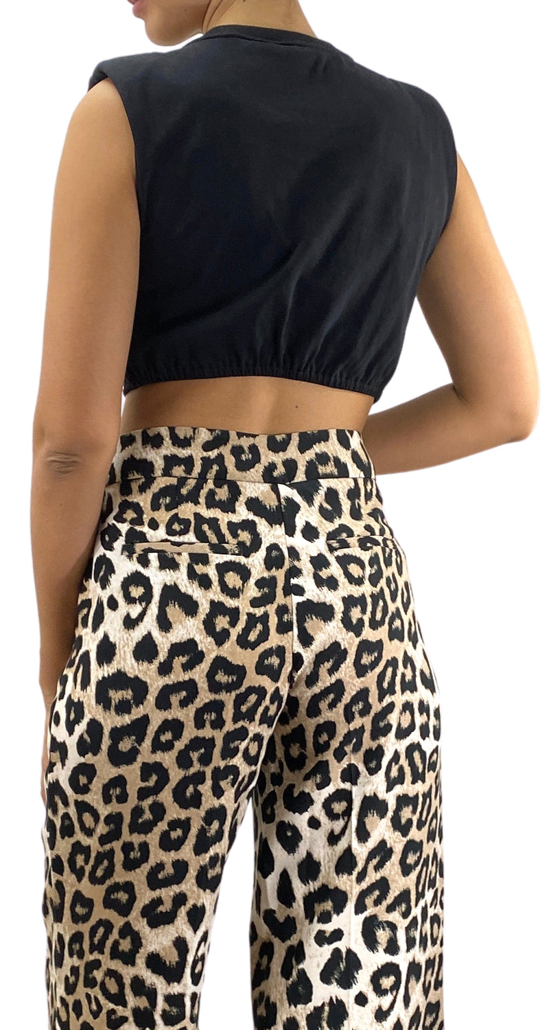 Polera corta en color Negro con hombreras, borde inferior elasticado y con lazo.