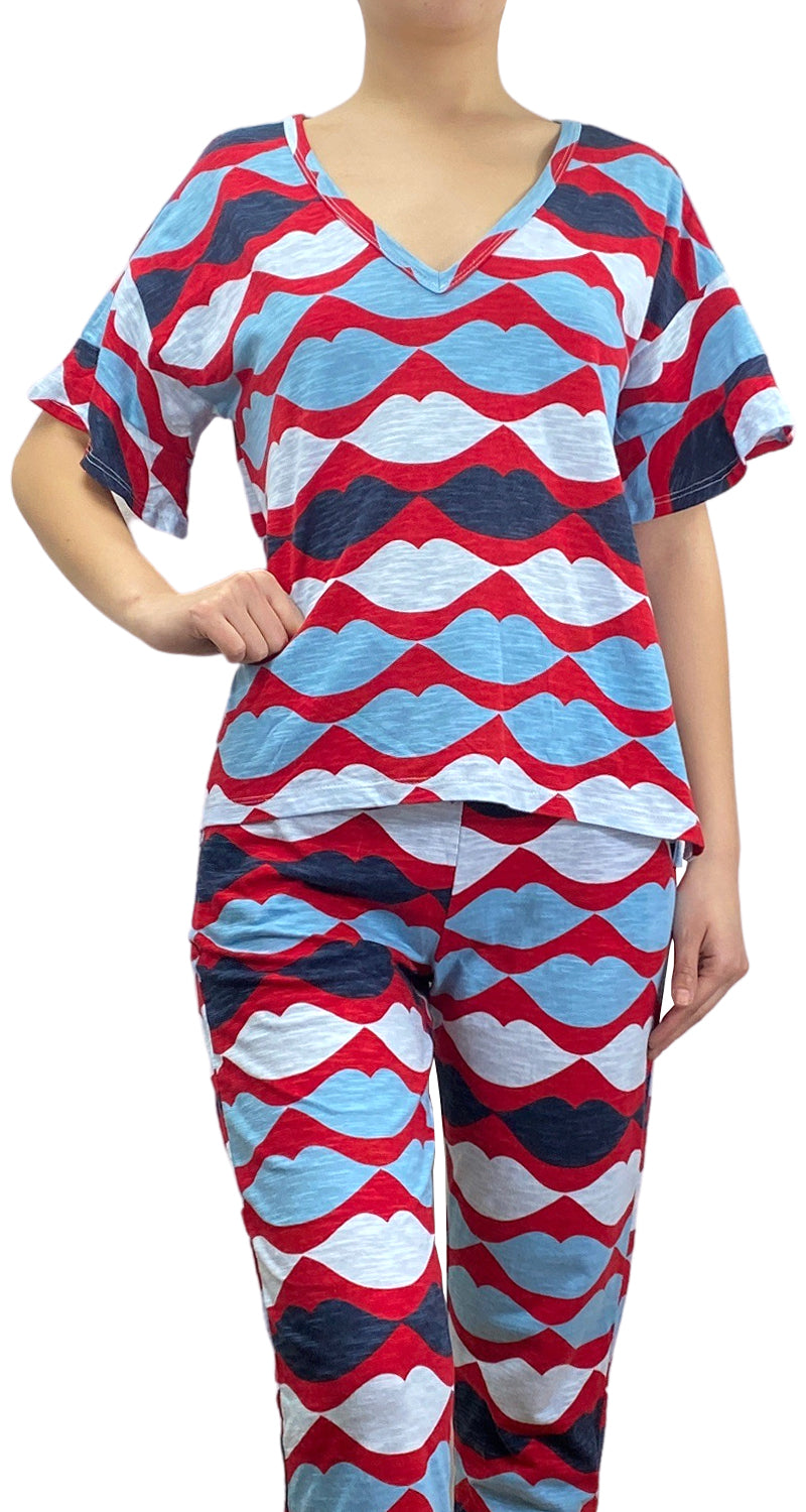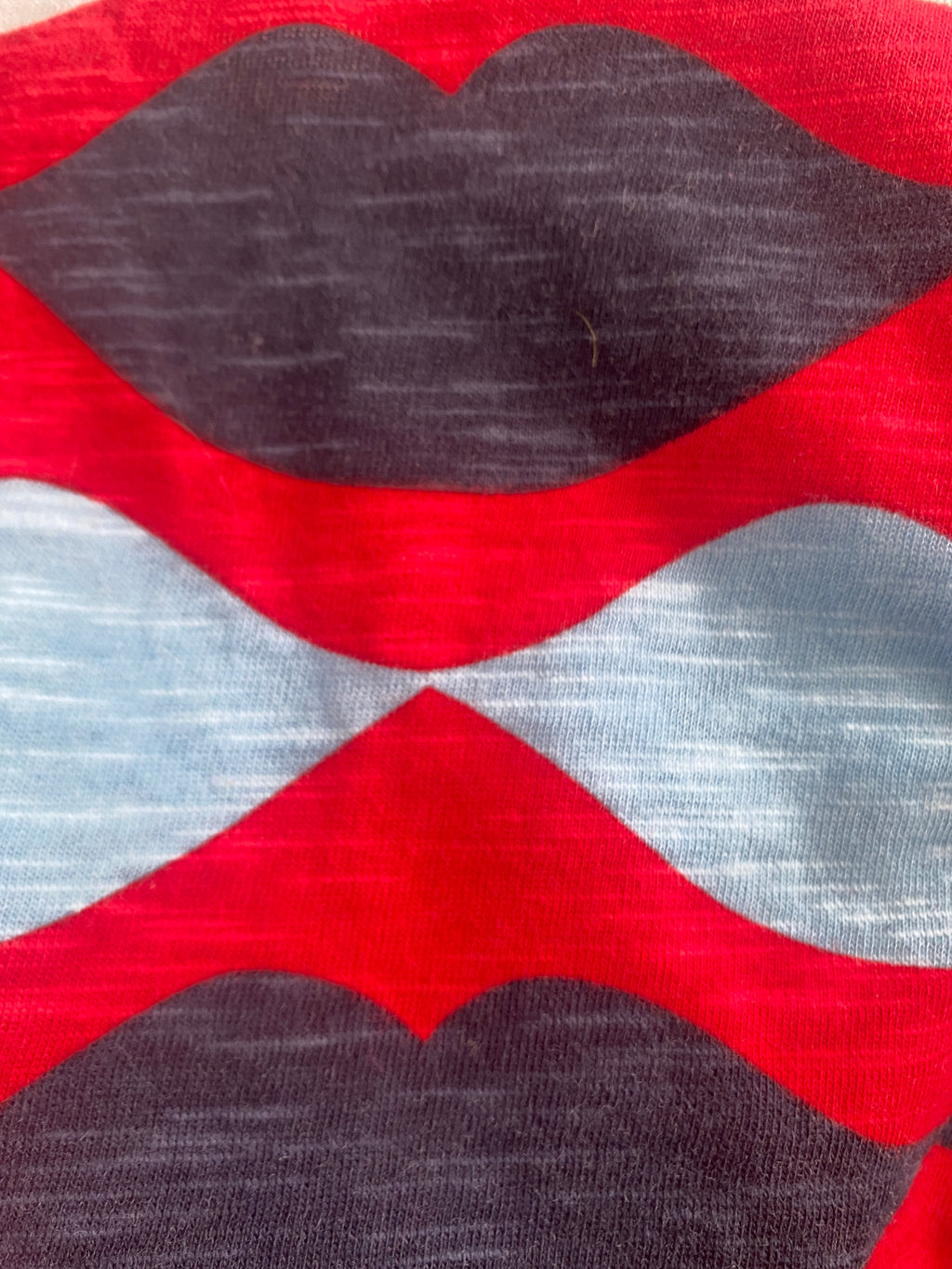 Polera manga corta con estampado de besos en color Rojo, Celeste y Azul. Cuello en V. Talla 3 de la marca