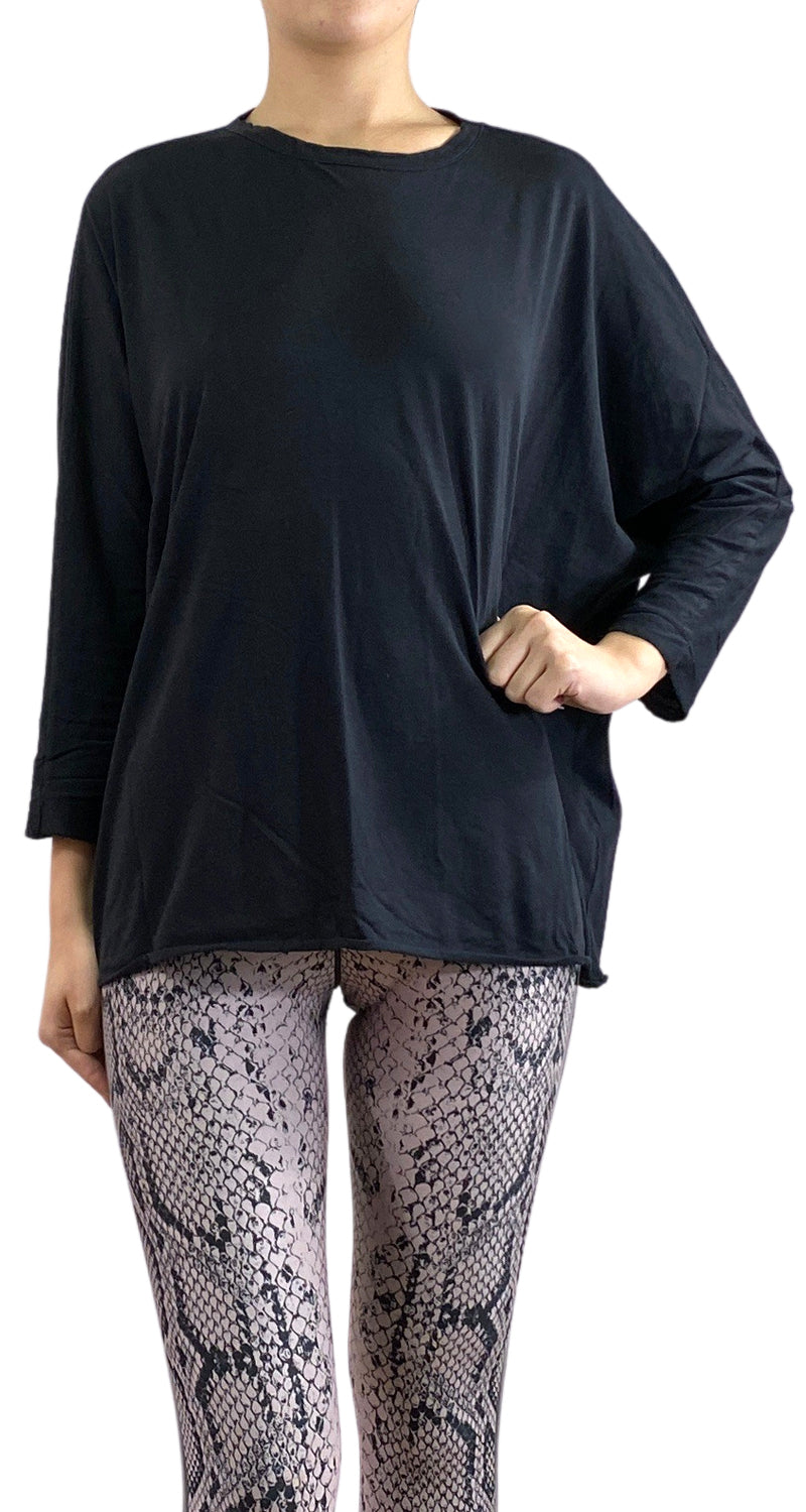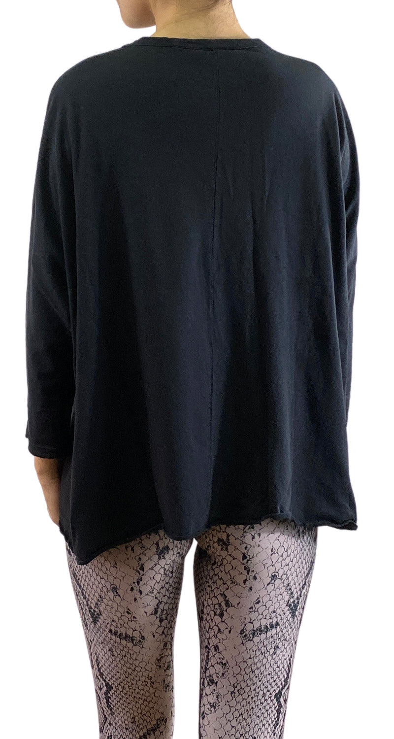 Polera color Negro de cuello redondo y mangas largas.