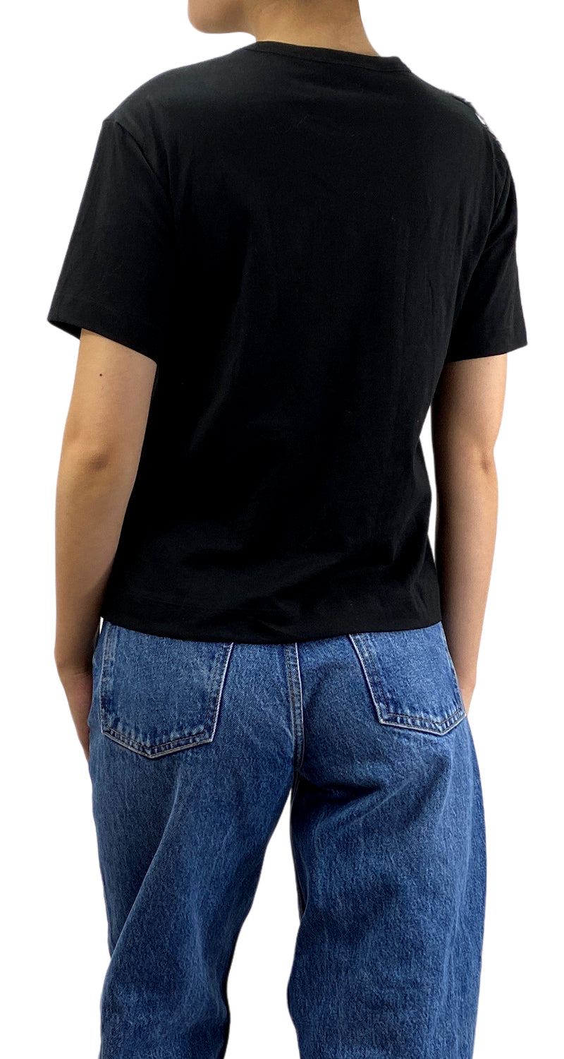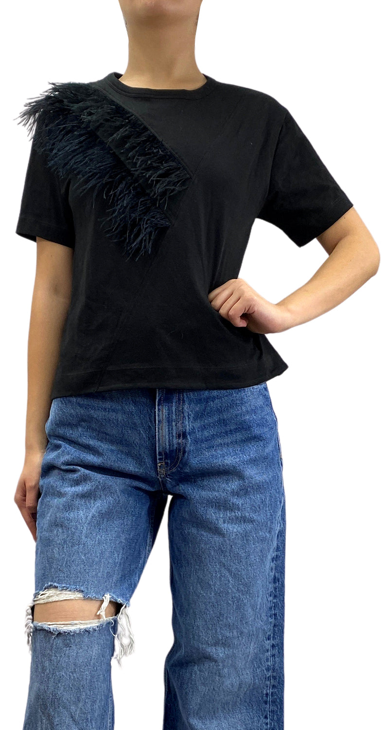 Polera color Negro de cuello redondo con diseño de plumas. Talla 1 de la marca.