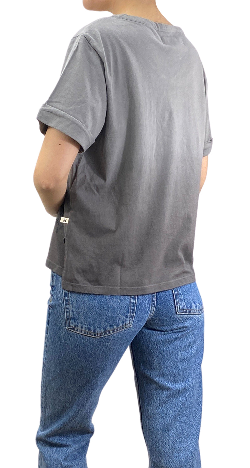 Polera color Gris en degrade, diseño bordado y con lentejuelas en delantero, abertura laterales.