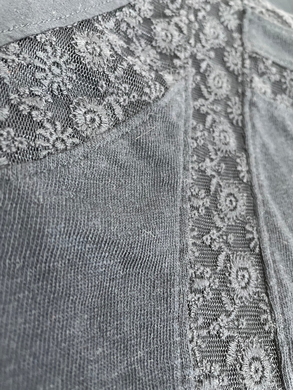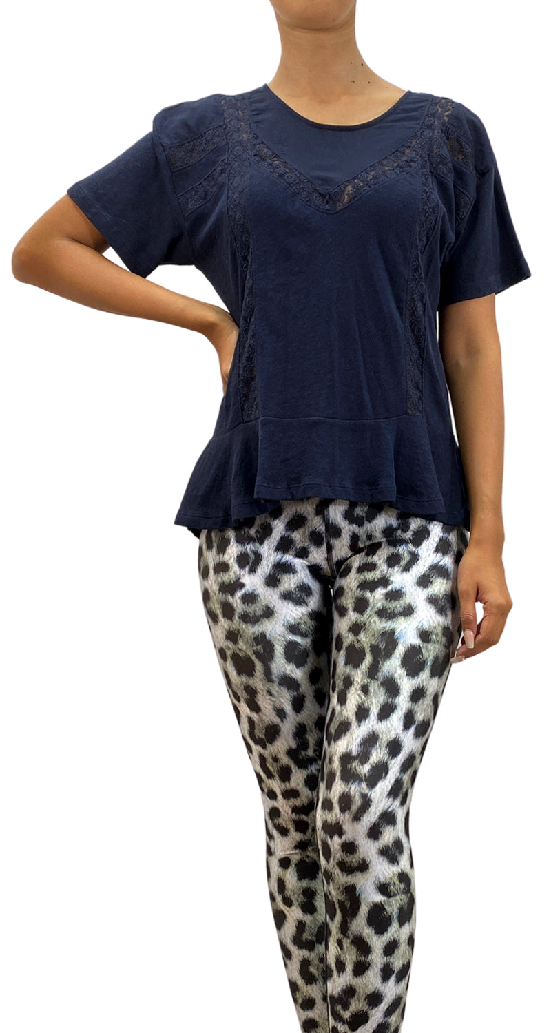 Polera color Azul Marino con detalles en malla con bordado de flores.
