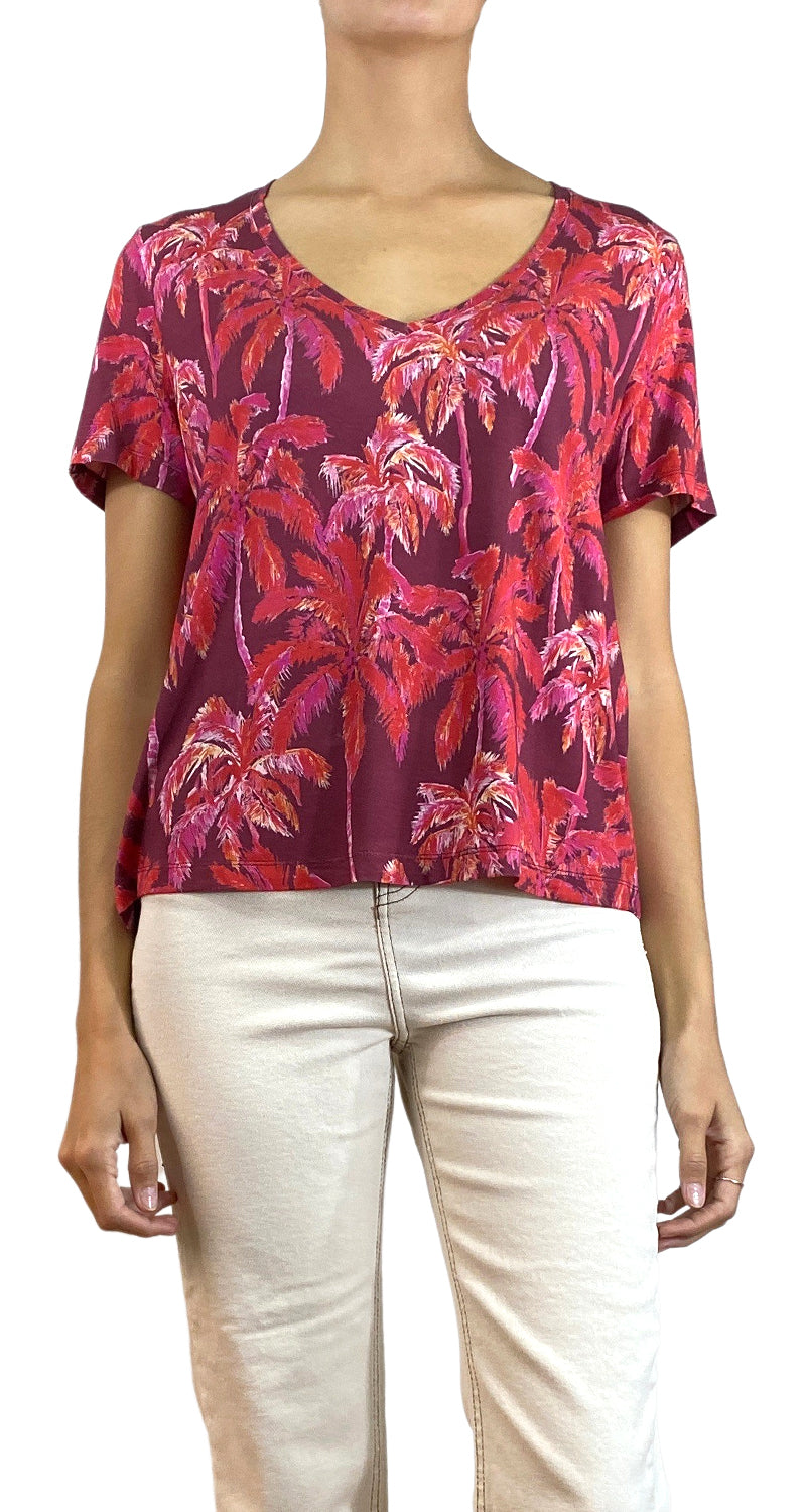 Poleras con estampado Multicolor de palmeras y cuello en V.
