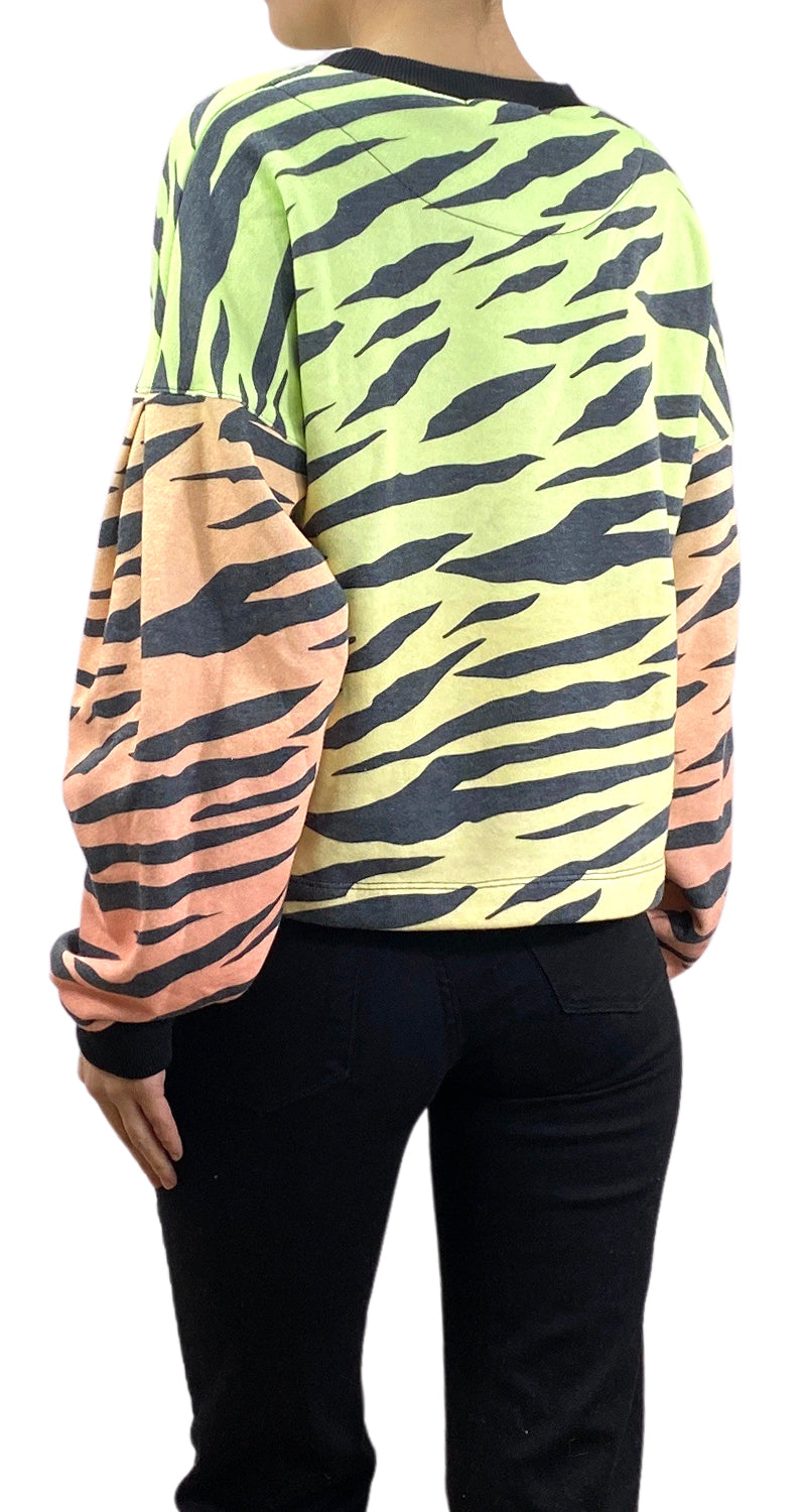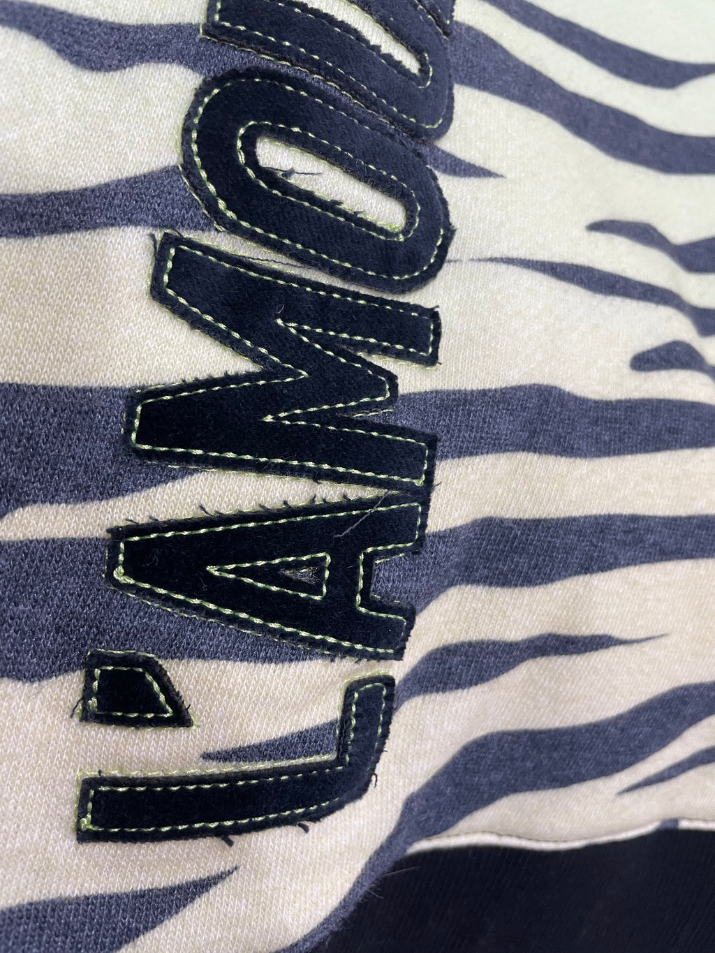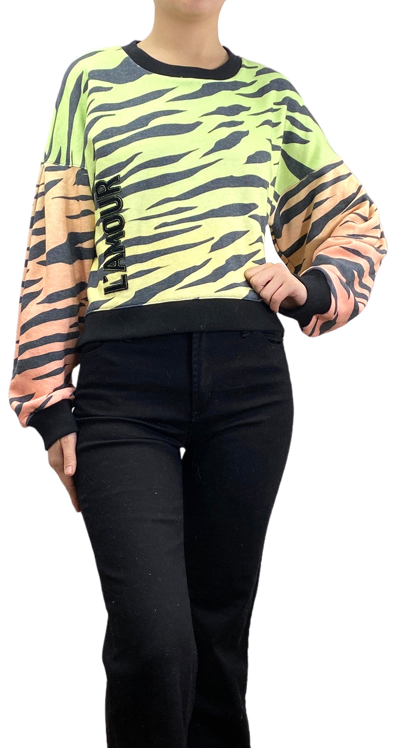 Polerón con estampado de cebra en Multicolor, abertura en laterales, estampado bordado "L´AMOUR" en delantero. Talla 2 de la marca.