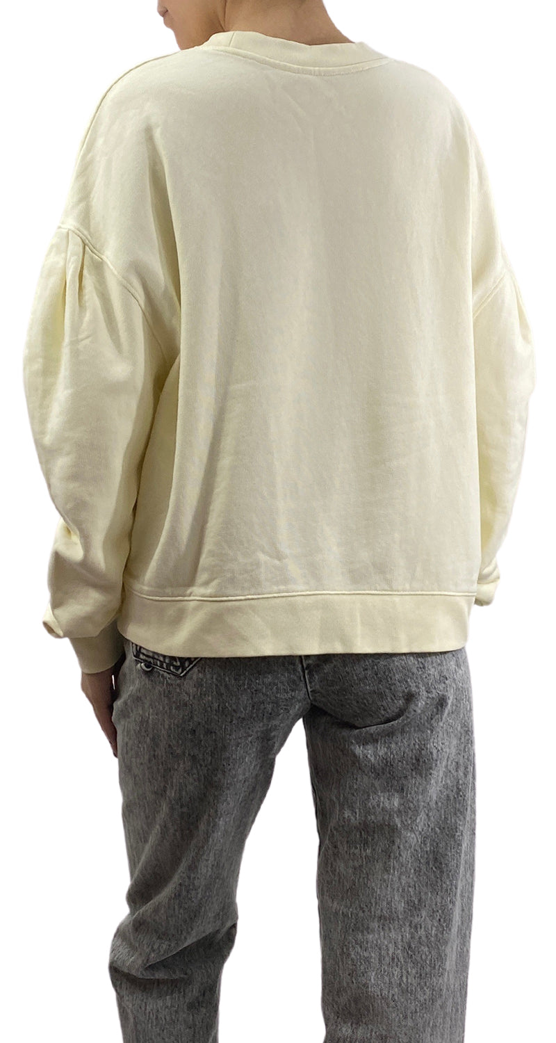 Polerón color Amarillo Pastel con estampado y bordado en delantero. Talla 1 de la marca.