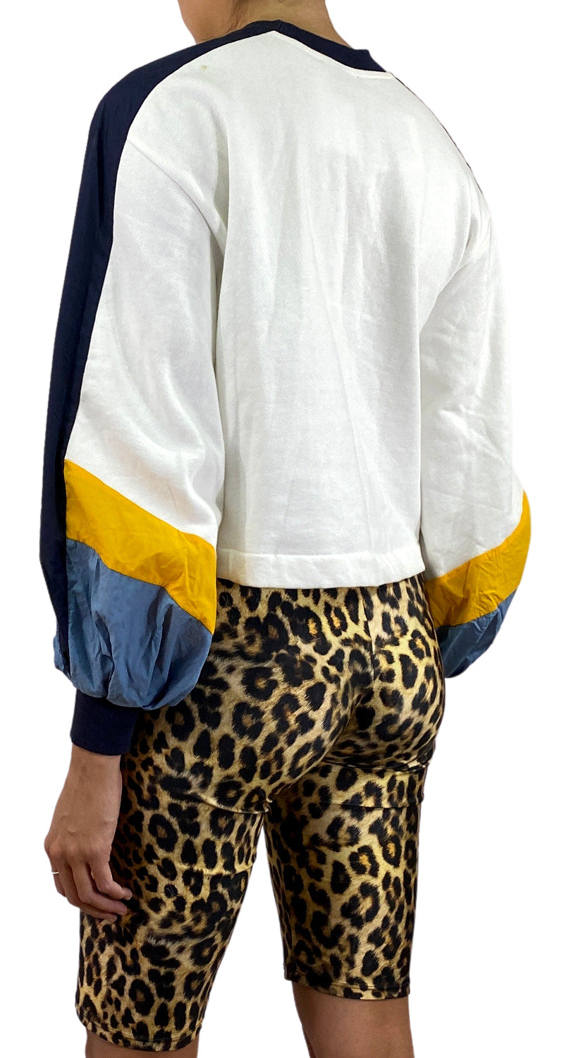 Polerón Blanco cerrado de cuello redondo con estampado en delantero.