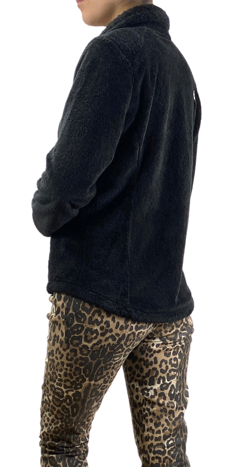 Polerón color Negro con cierre frontal, bolsillos y logro propio de la marca. Presenta moderados signos de uso.