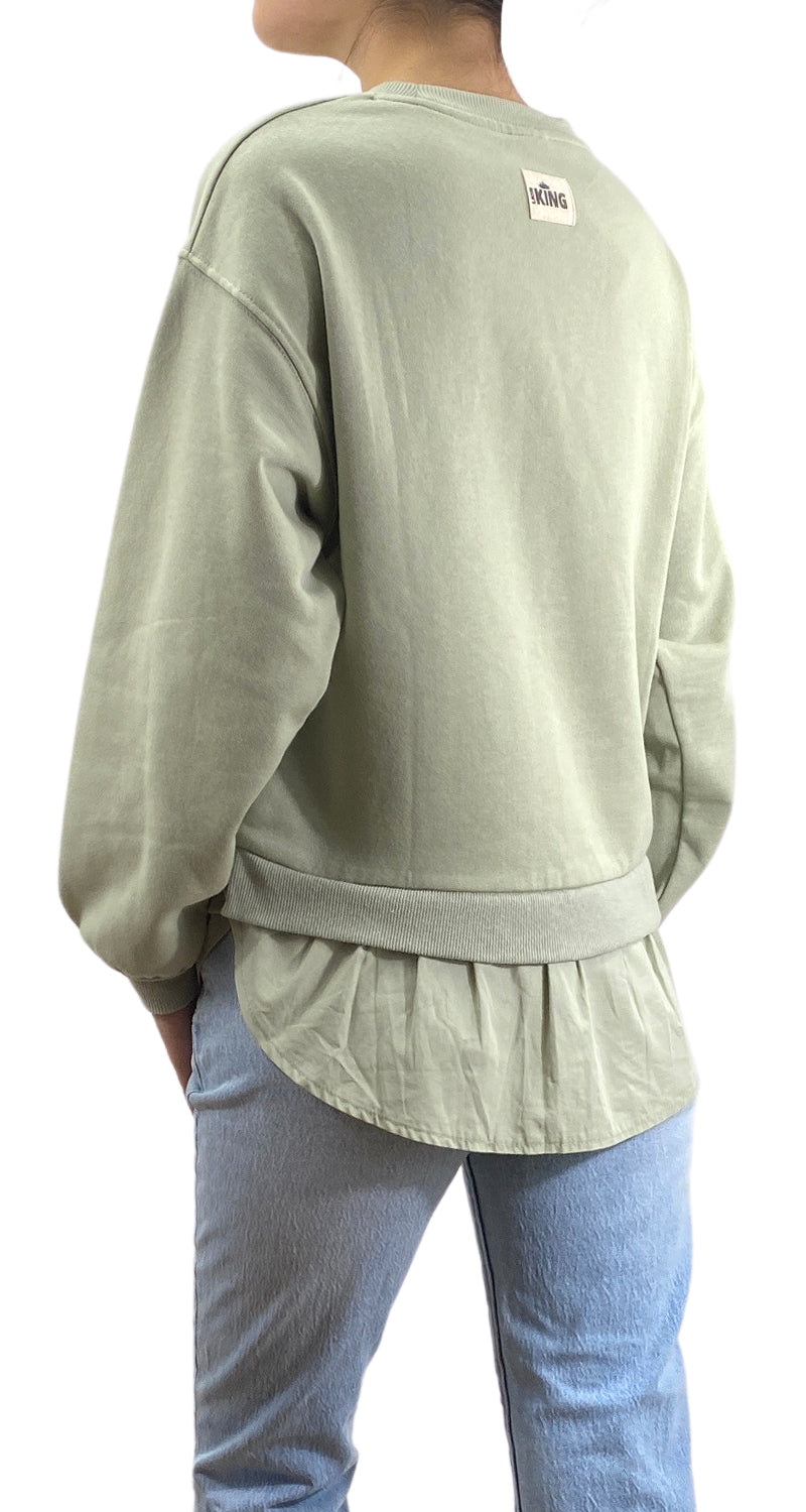 Polerón color Verde de cuello redondo con estampado frontal. Talla 11-12 de niña.