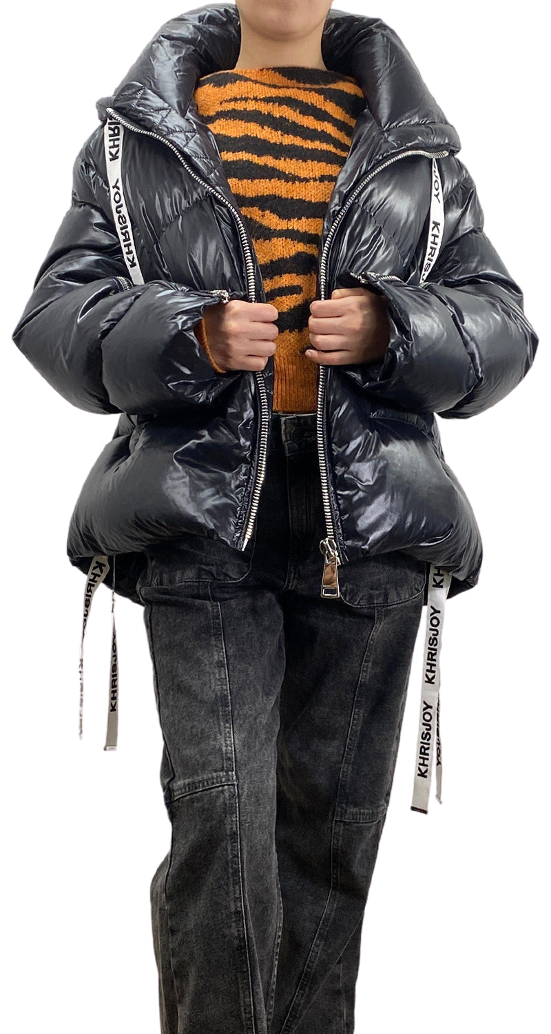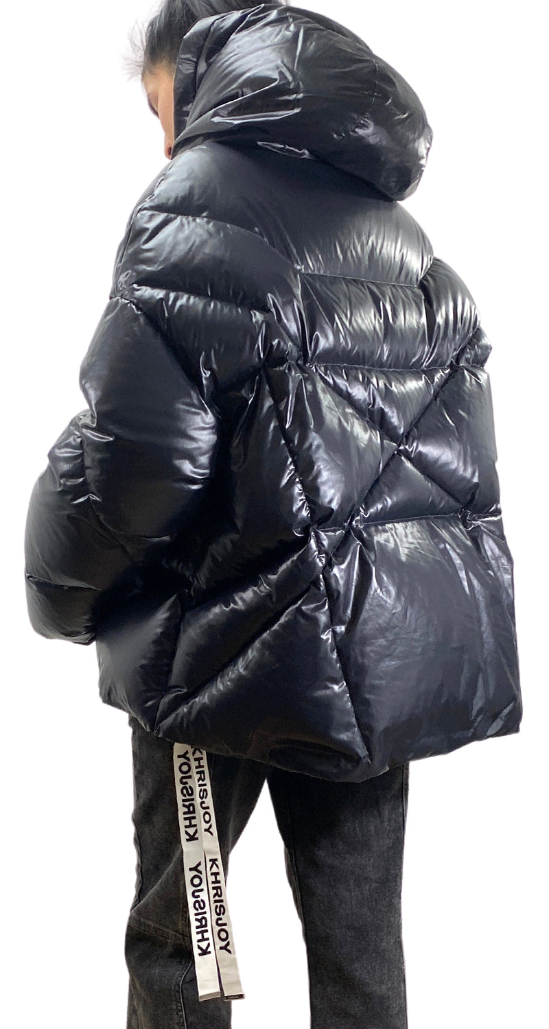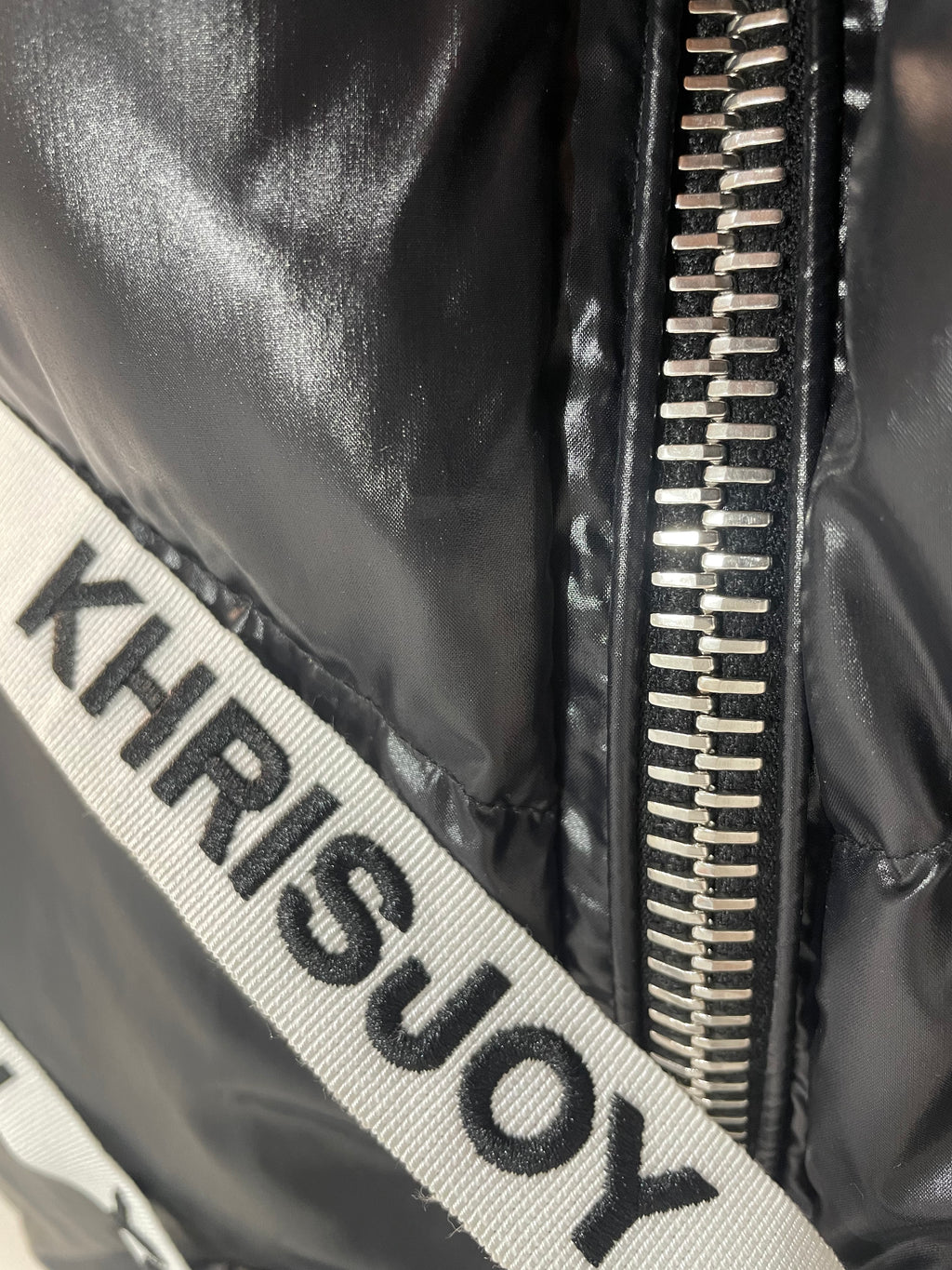 Parca acolchada en color Negro con capucha, relleno pluma de ganso, dos bolsillos y cierre en delantero, cordones con nombre de la marca bordado en Negro, cierre en mangas. Talla 01 de la marca.