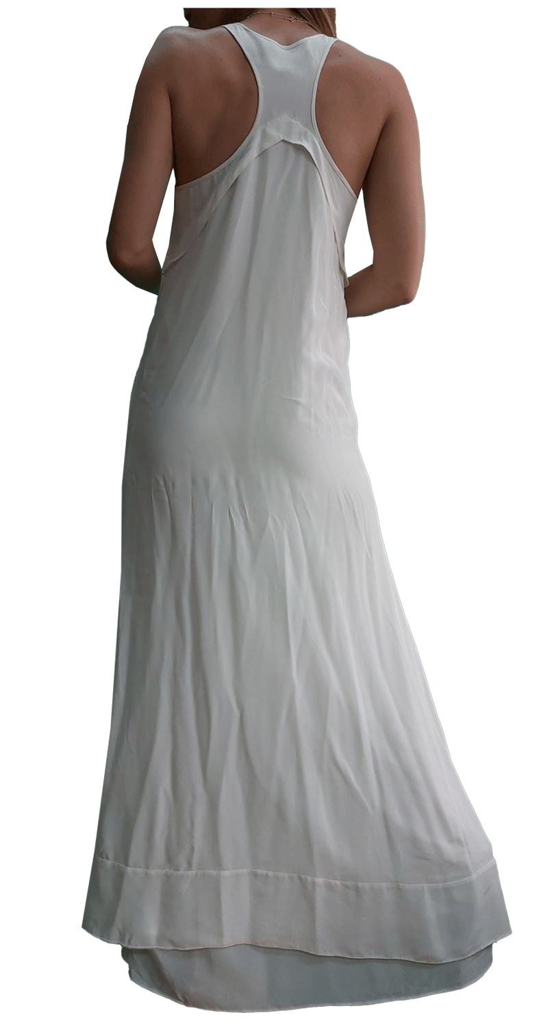 Maxi Vestido de Seda sin mangas y escote redondo. Industria Argentina. Talla 42 de la marca.