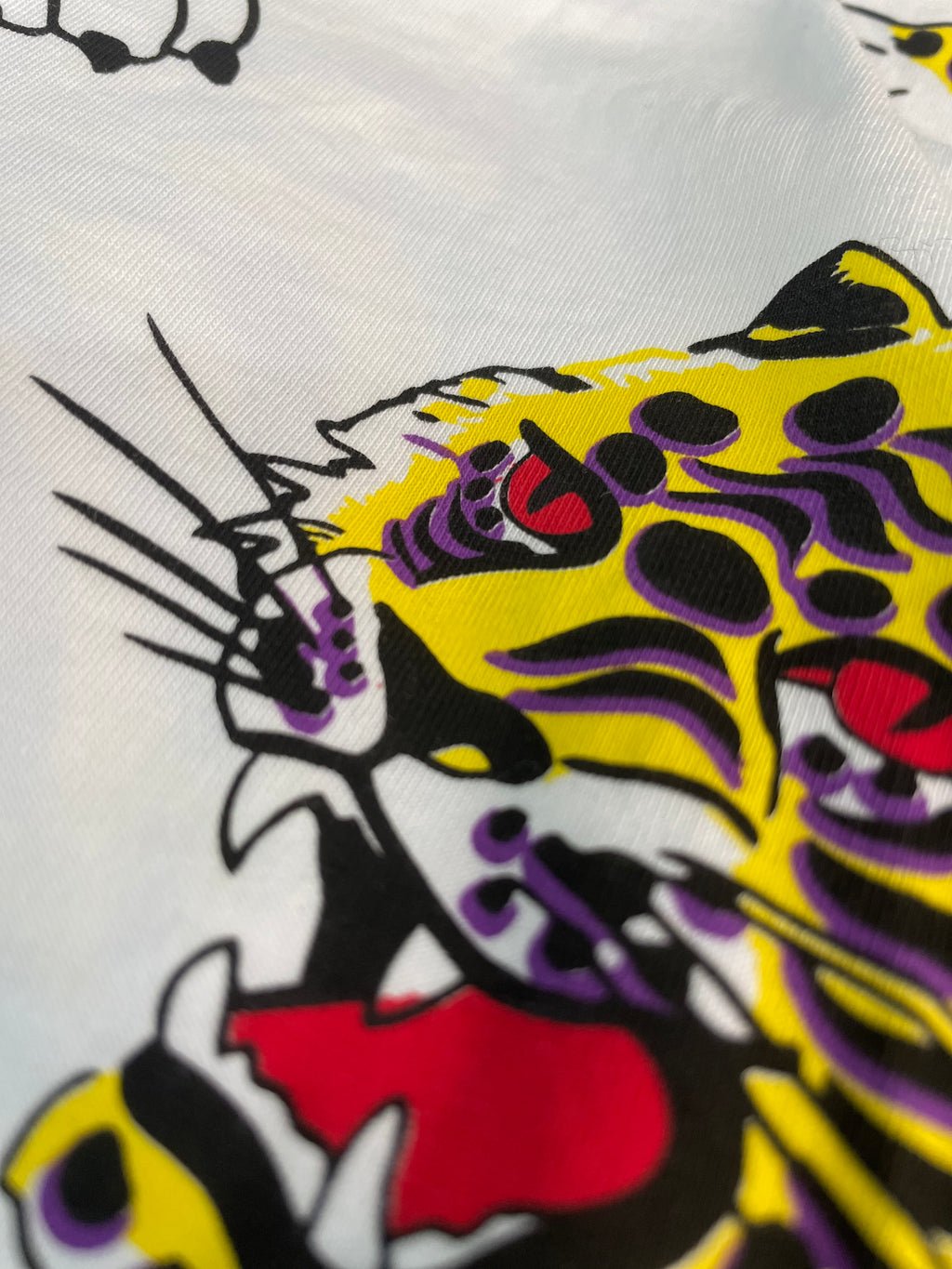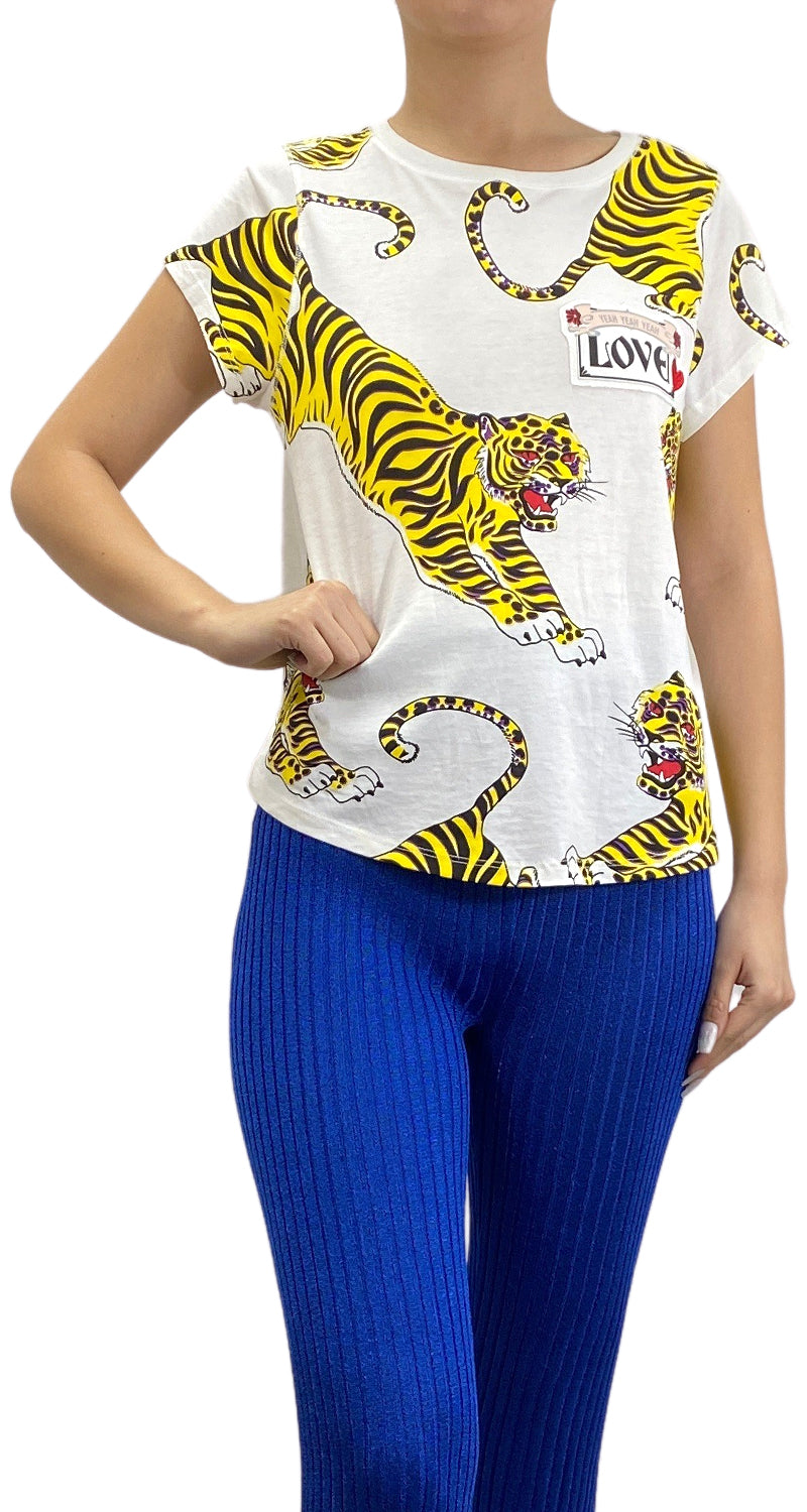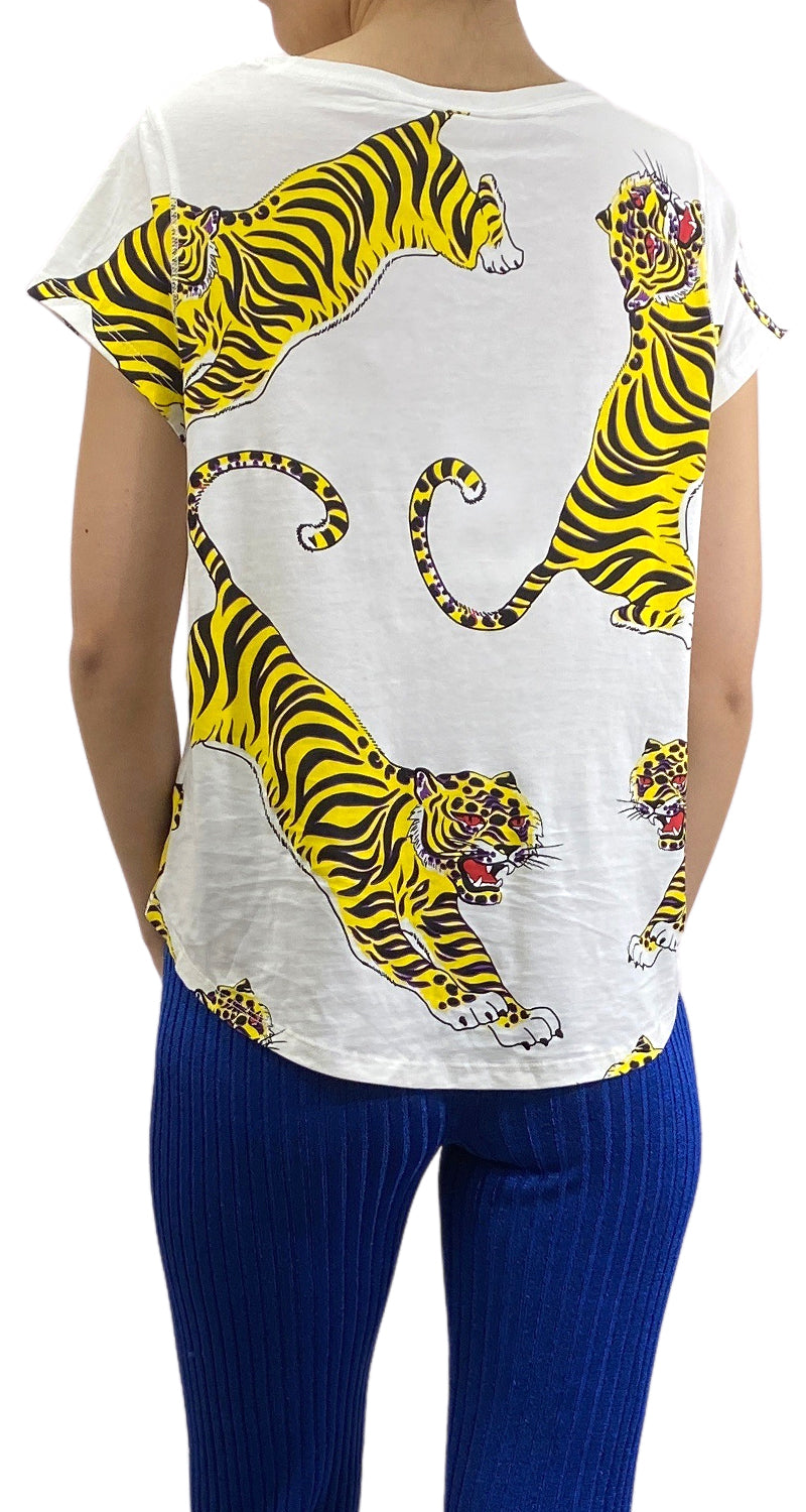 Polera color Blanco de cuello redondo con estampado de tigre. Talla 1 de la marca.