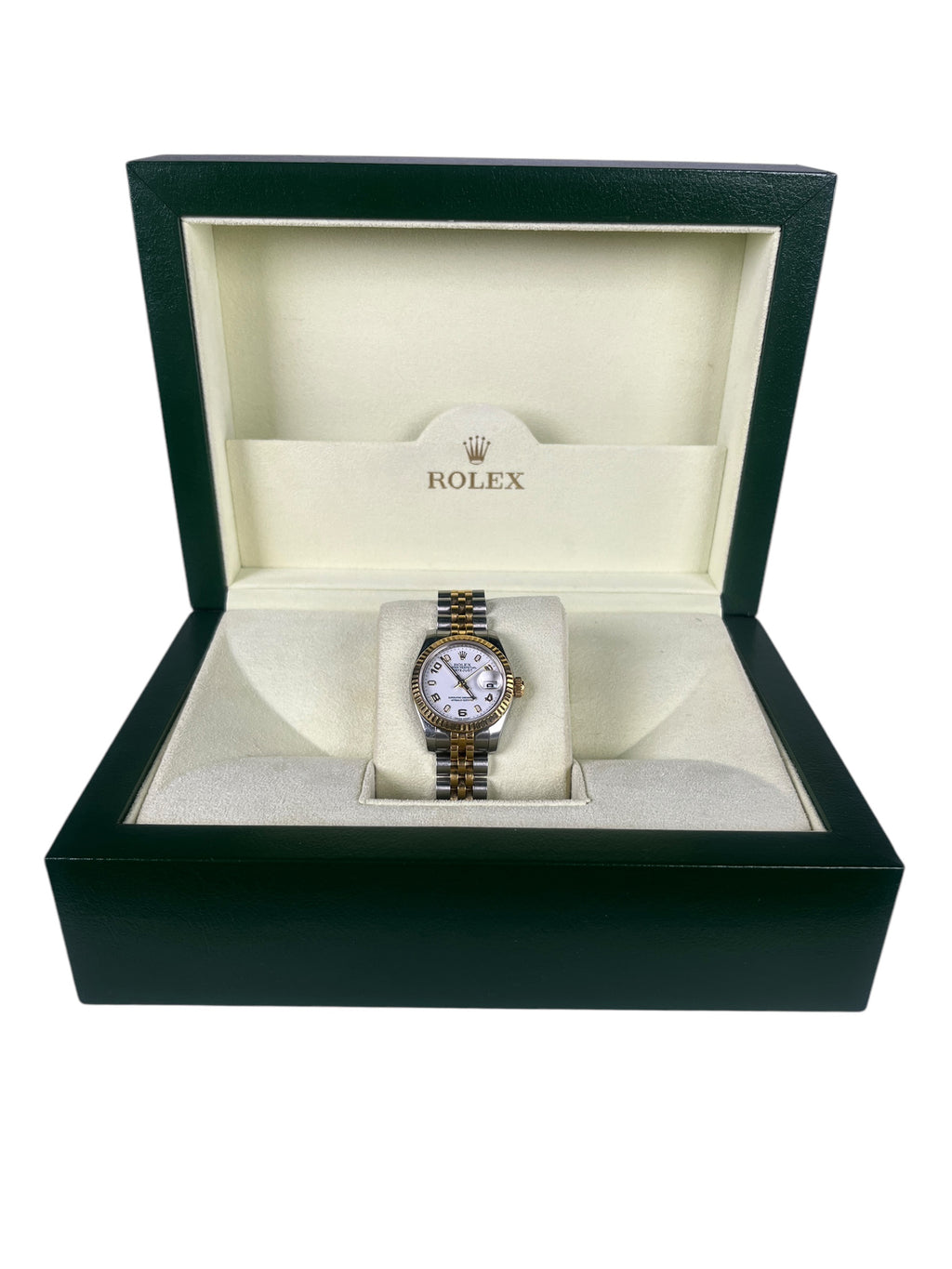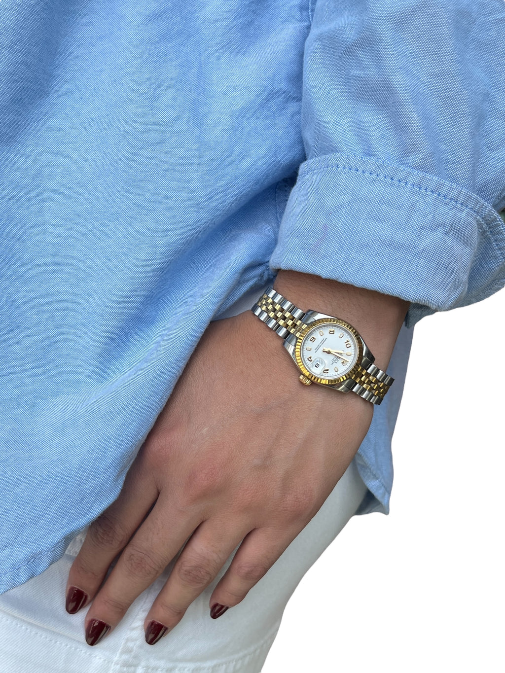 Meterial: rolesor amarillo, combinación de acero Oystersteel y oro amarillo, caja modelo Oyster 31 mm, acero Oystersteel y oro amarillo. Diámetro 31 mm. Bisel estriado. Corona de cuerda enroscada con sistema de doble hermeticidad Twinlock. Cristal Zafiro resistente a las rayaduras, lente Cyclops sobre la fecha. Hermeticidad: hermético hasta 100 metros/330 pies. Movimiento perpetual, mecánico, de cuerda automática. Brazalete Jubilee, eslabones de cinco elementos. Incluye caja original de la marca y certificado de originalidad.