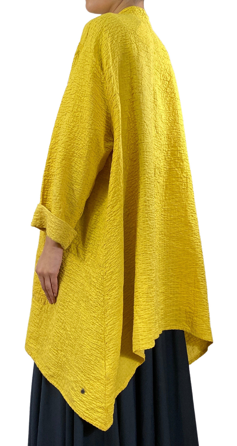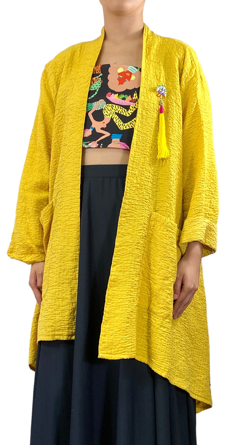 Saco color Amarillo con diseño de pin decorativo en delantero.
