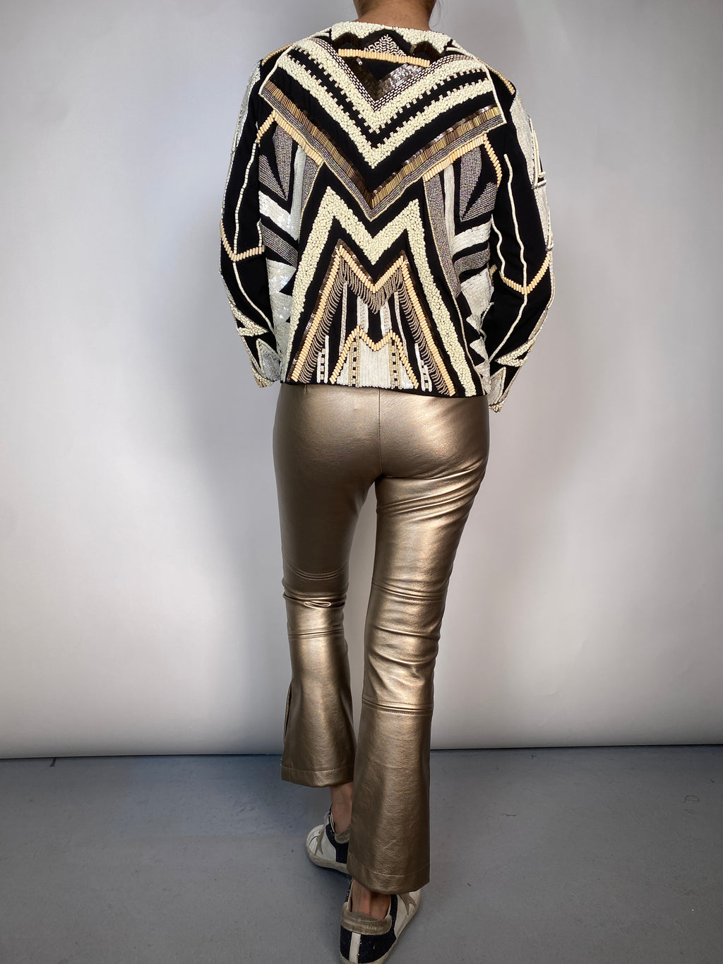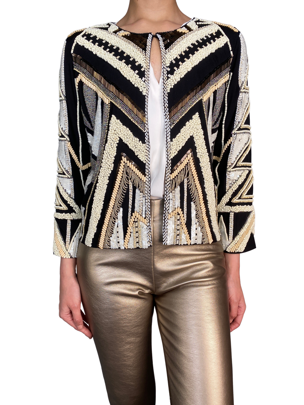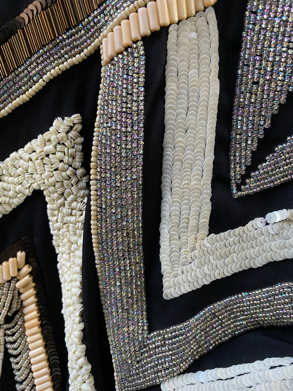 Saco color Negro con diseño de aplicaciones de mostacillas y lentejuelas.