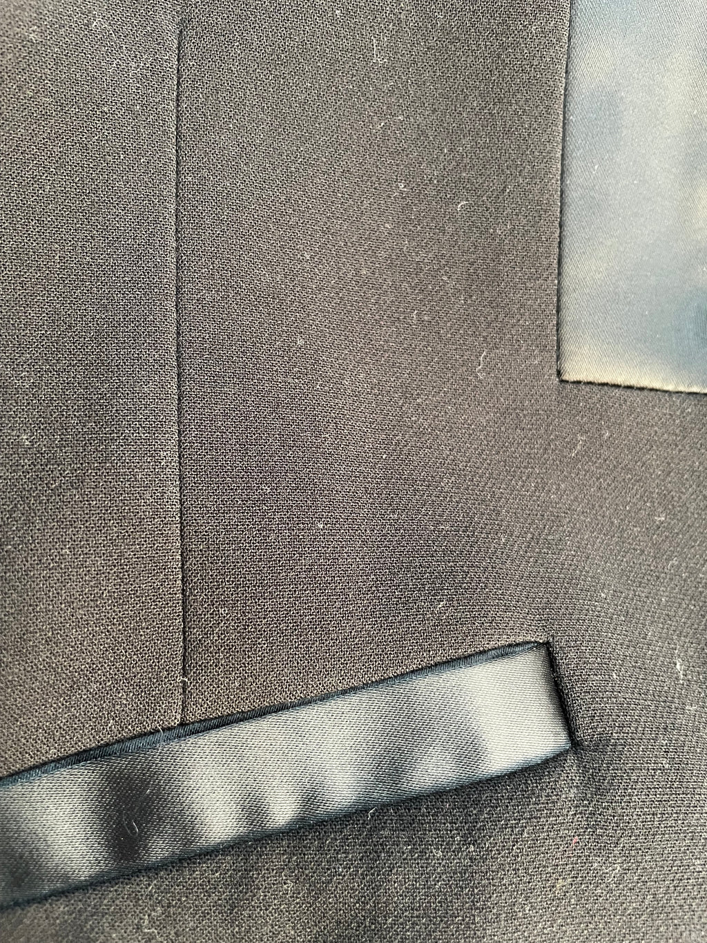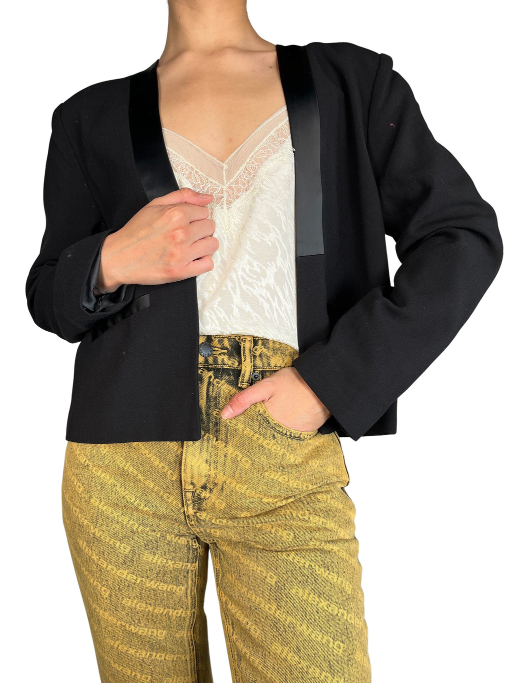 Blazer color Negro con solapa y borde de bolsillos satinados.