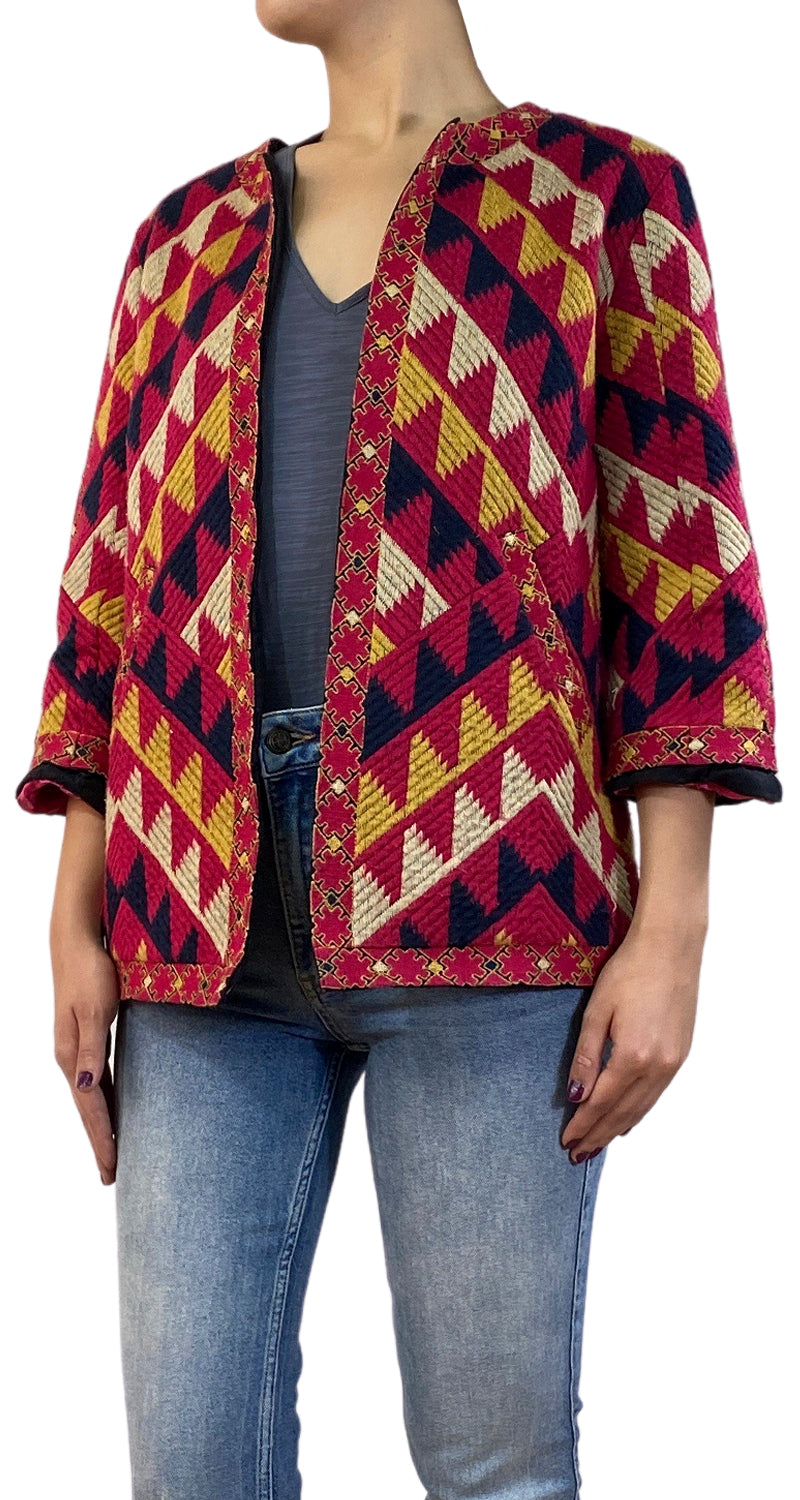 Saco con estampado bordado Multicolor, bolsillos frontales, mangas 3/4
