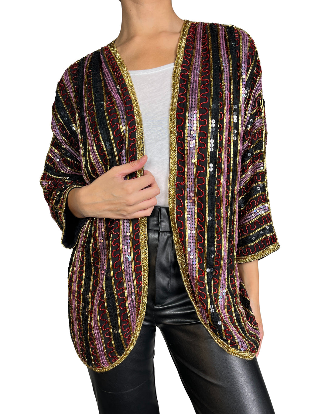 Kimono corto con bordados 100% artesanal en lentejuelas y canutillos.