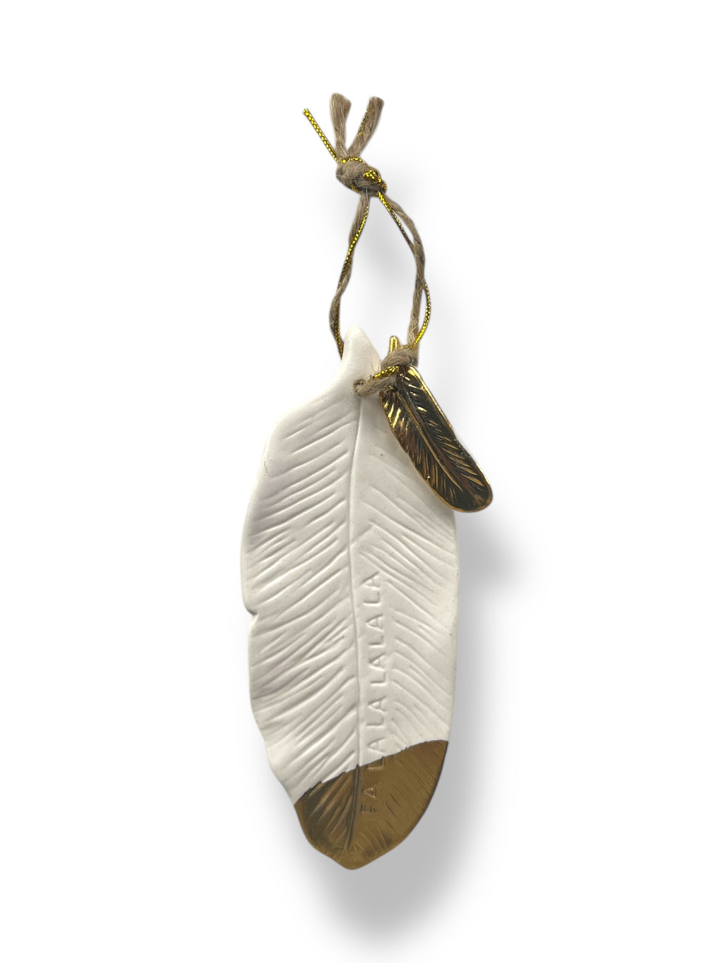 Set de 17 unidades de hojas decorativas para colgar, de color blanco con detalles dorados.