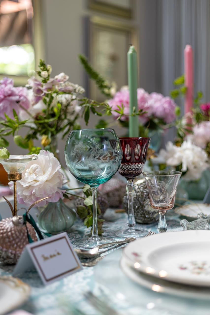 Set 4 copas grandes holandesas talladas flor y espiga. Medida: 21 x 8 cm.