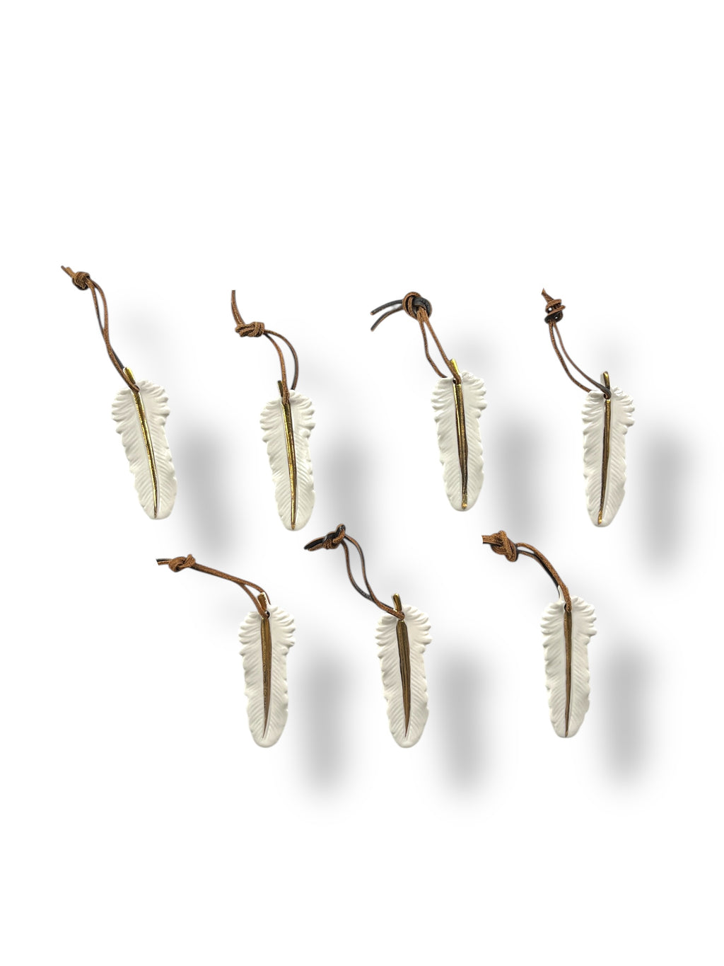 7 unidades de hojas decorativas para colgar. De color blanco con línea dorada.