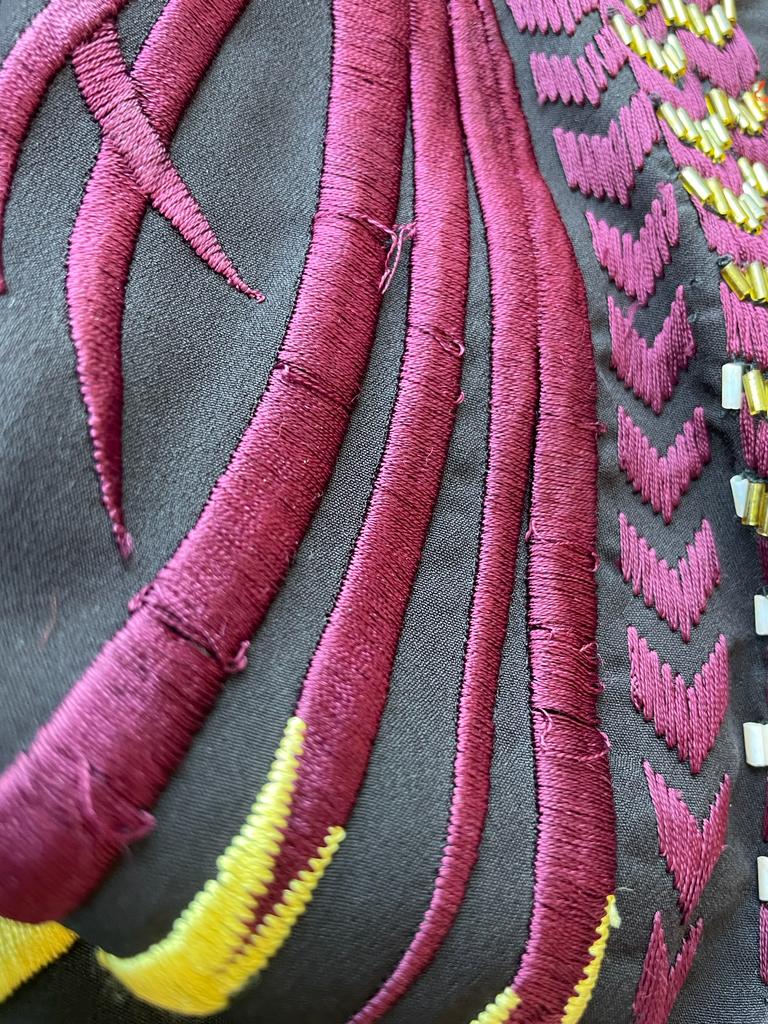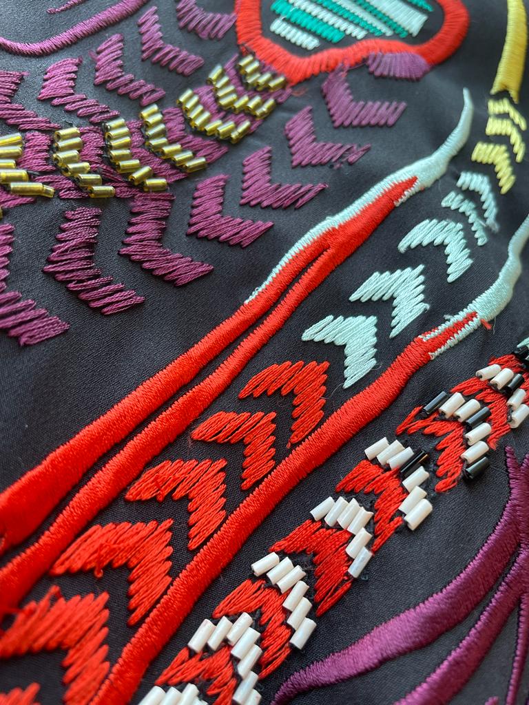 Presenta hilos descosidos en bordado. Talla 2 de la marca. Altura de modelo 1,68