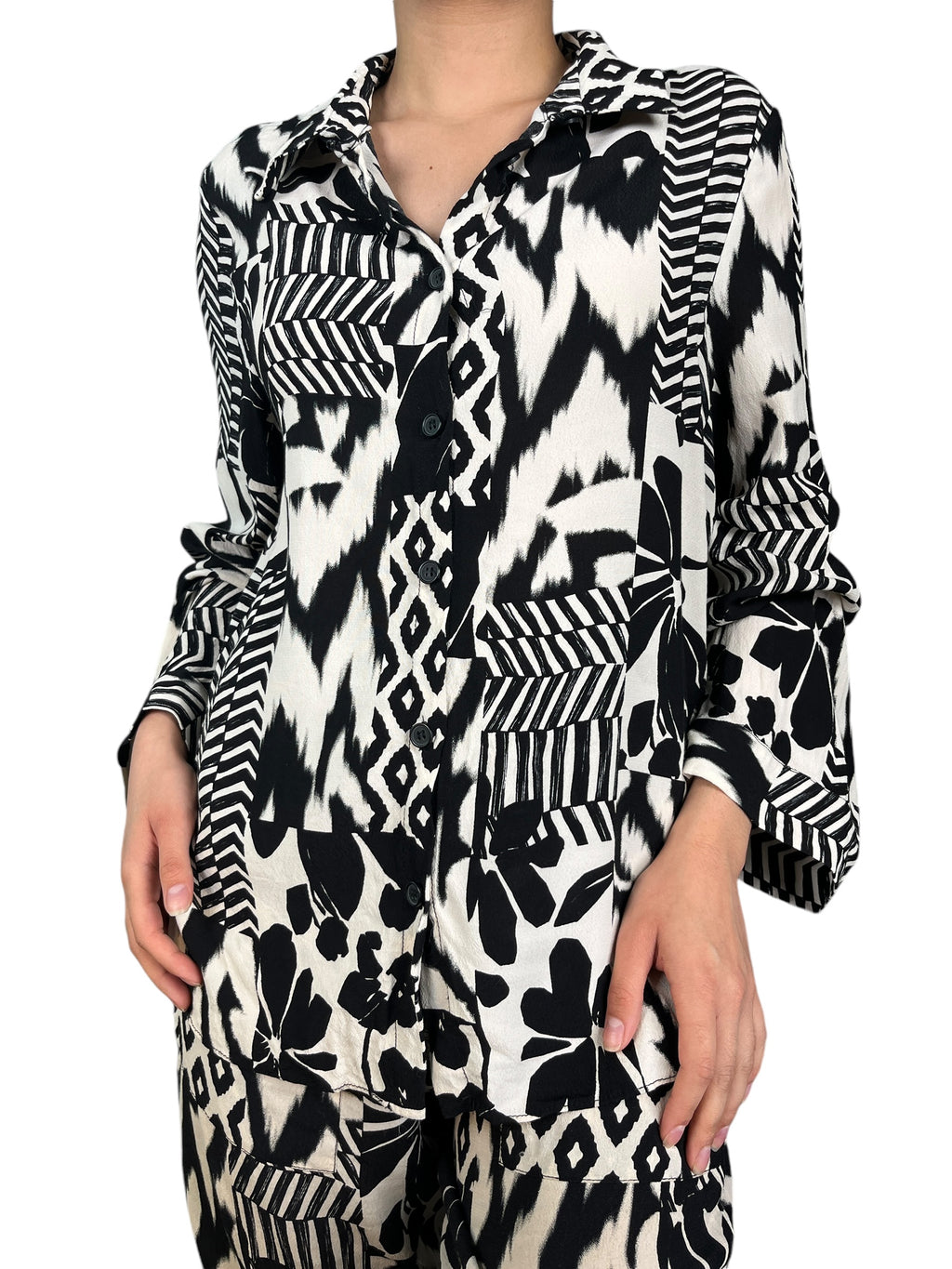 Altura modelo 1,60. Blusa talla S. Pantalón talla M.