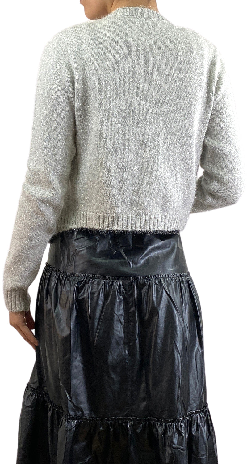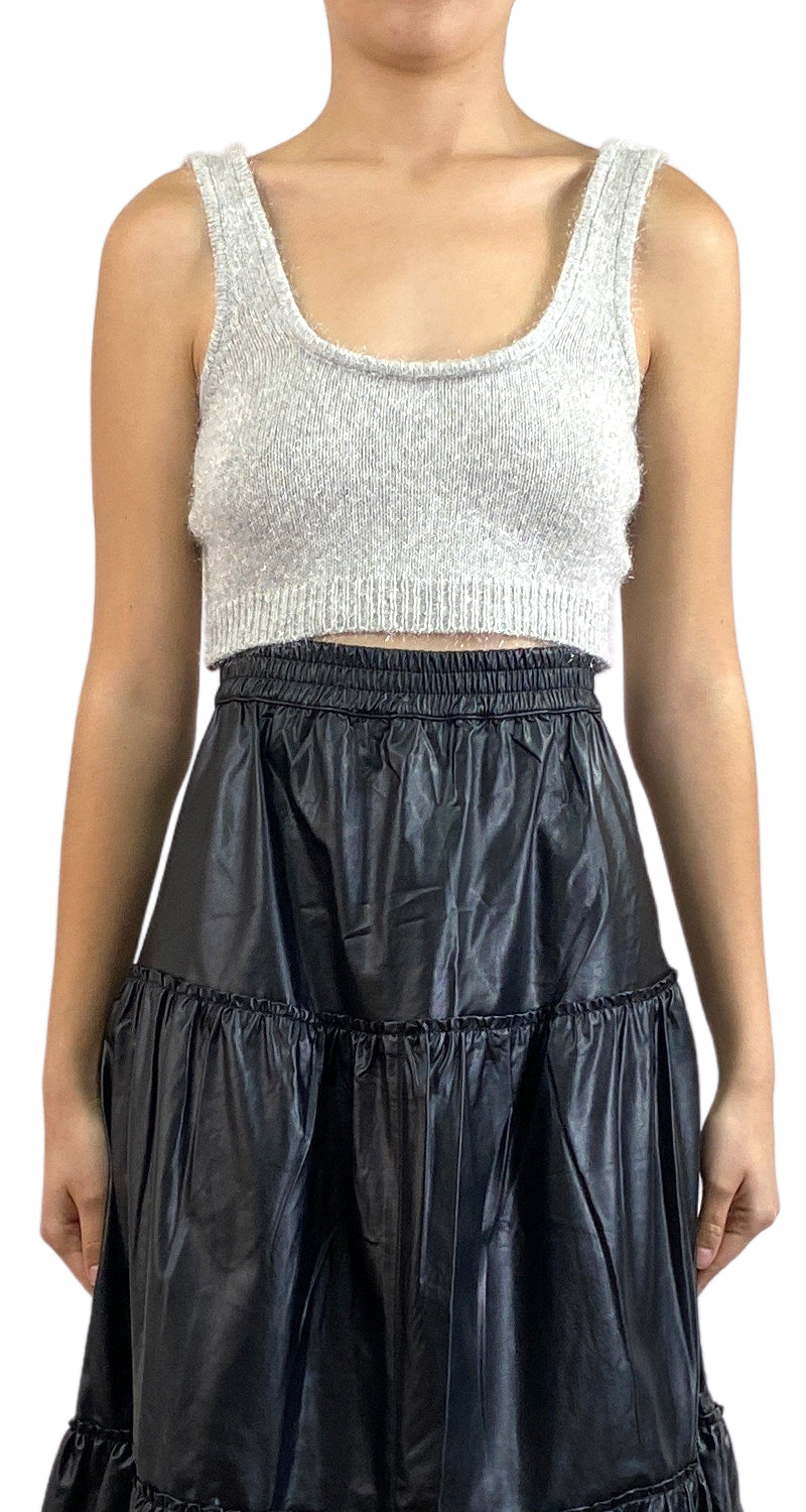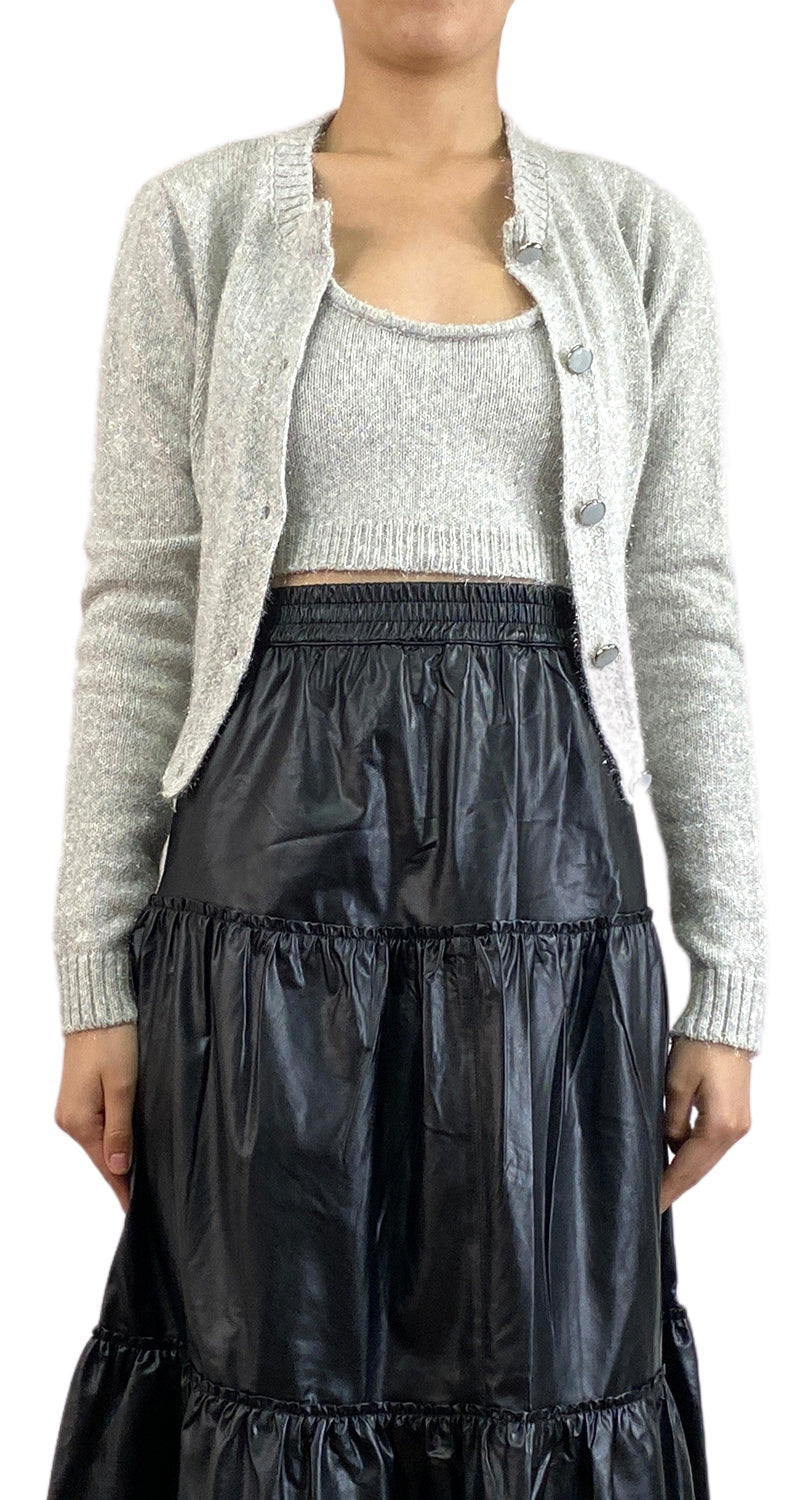 Set de Crop Top y Chaleco en color Gris con detalle de fibras metalizadas. Talla 1 de la marca.