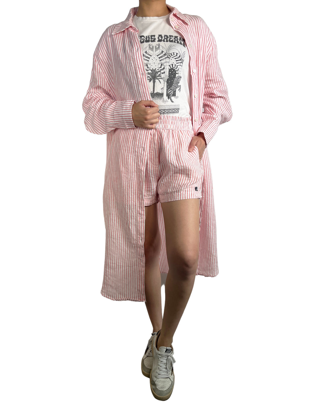 Altura de modelo 1,68. Tallas: Blusa S, Shorts L.
