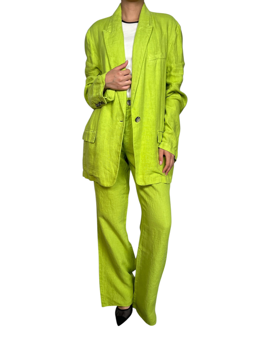 Blazer talla M, pantalón talla L. Altura de modelo 1,60