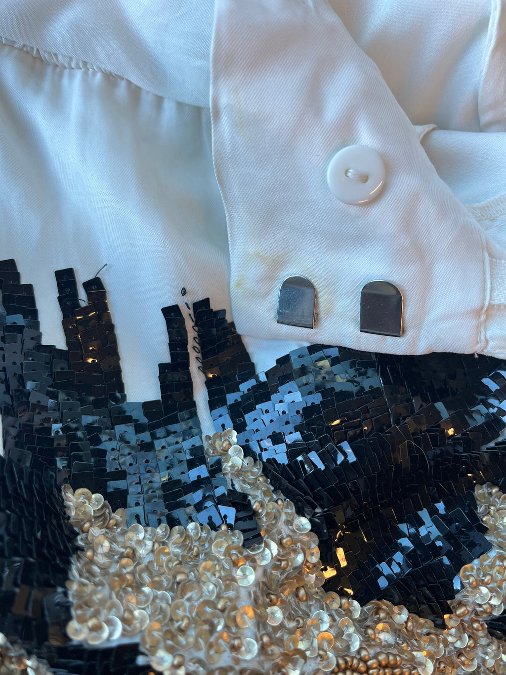 Presenta leves signos de uso y detalles en lentejuelas. Altura modelo 1,68.