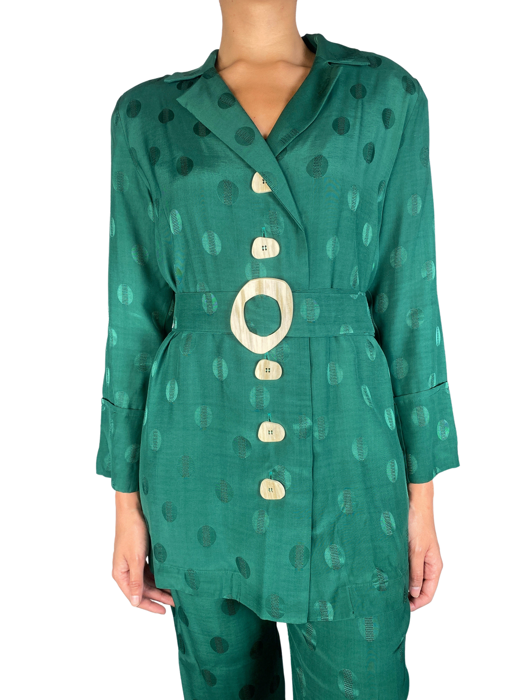 Altura de la modelo 1,68. Talla 36 de la blusa. Talla 38 del pantalón.