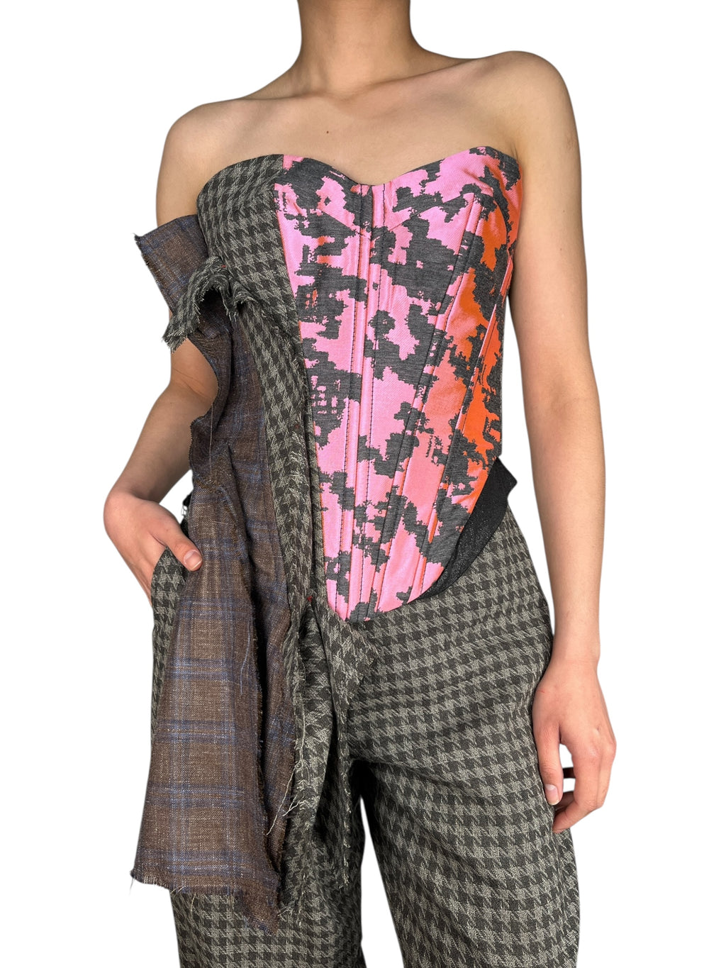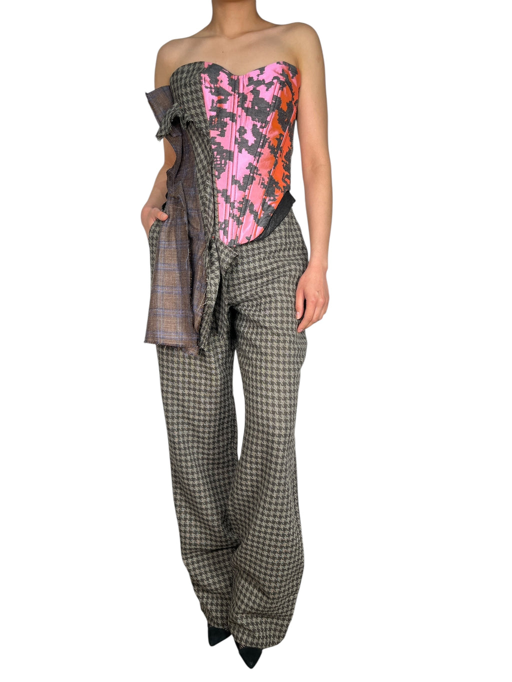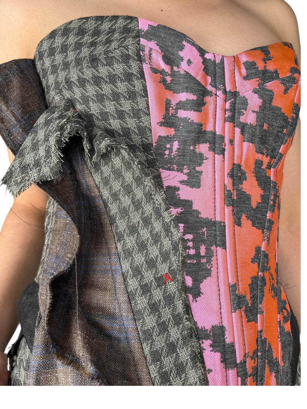 Composición: Tela 1: 100% Lana - Tela 2: 46% Acetato / 45% Viscosa / 9% Seda - Tela 3: 51% Algodón / 41% Poliéster / 8% Poliéster Metalizado