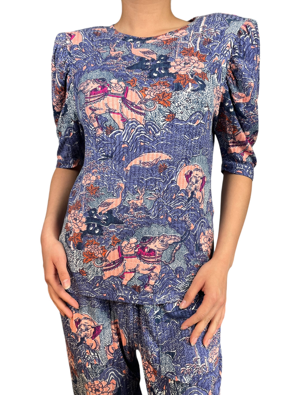 Pantalón talla 2 (M), polera talla 1 (S). Altura de modelo 1,60