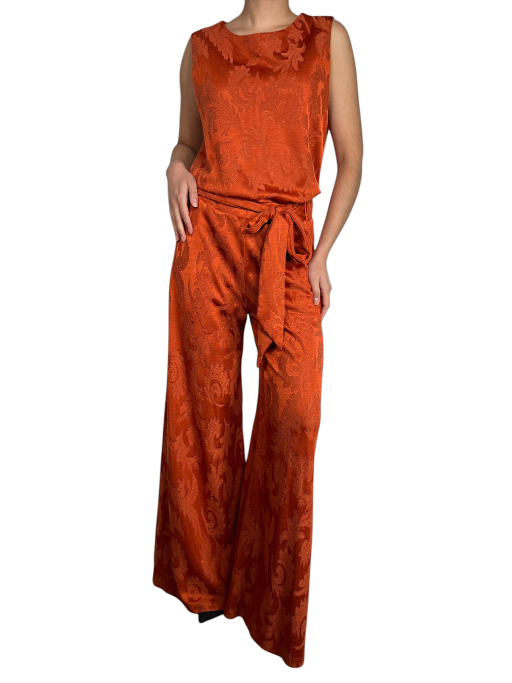 Altura modelo 1,62 cm. Pantalón talla 40, Blusa talla L.
