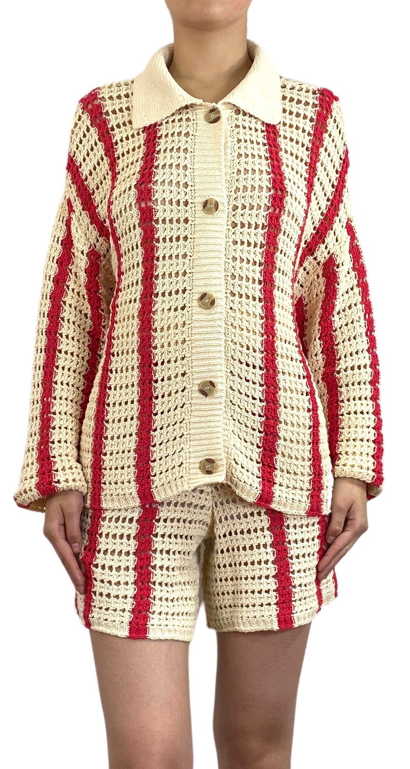 Set tejido Beige con botones en delantero y cuello.