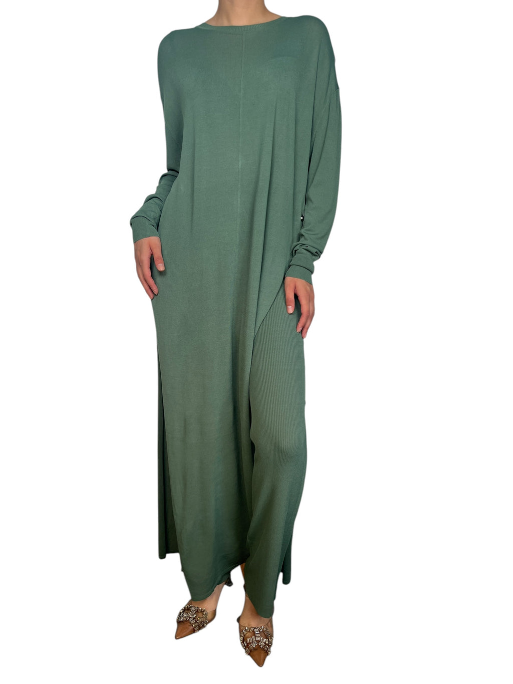Altura de modelo 1,60. Presenta detalle de punto corrido en Top.