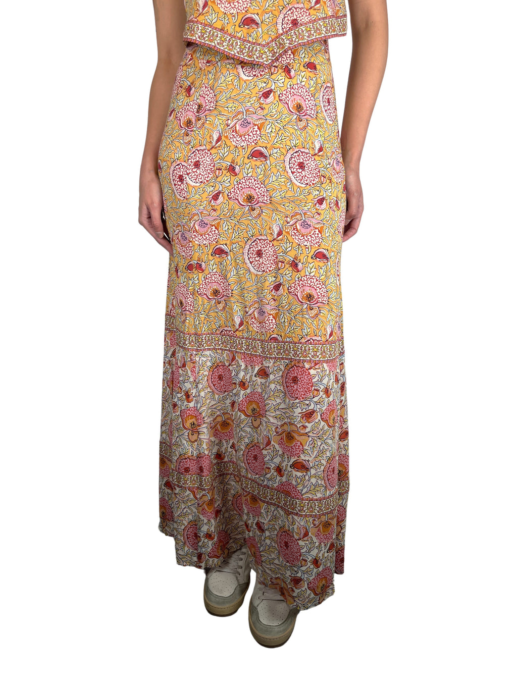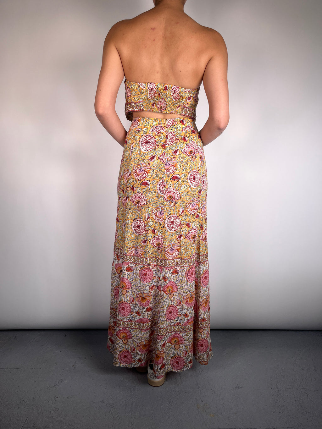 Altura de modelo 1,68. Tallas: Top S, Falda XS.